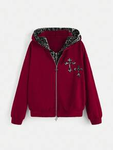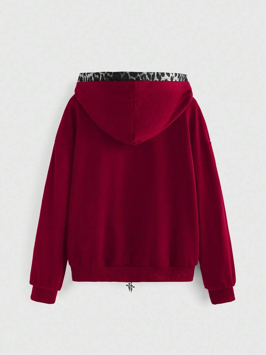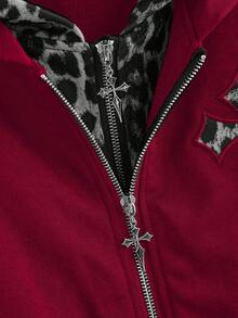 Goth Sudadera 2 en 1 con estampado de cruz y leopardo