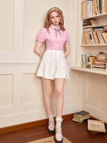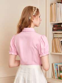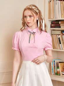 Kawaii Blusa con abertura con lazo delantero de manga farol