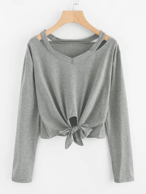 Camiseta con nudo delantero de cuello con abertura