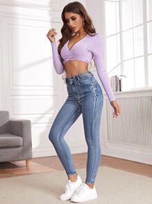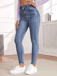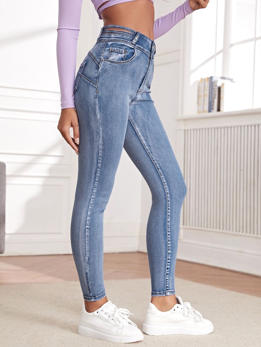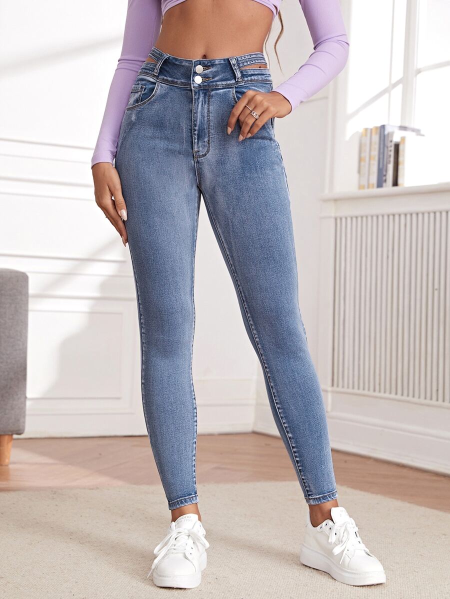 Jeans ajustados de cintura con abertura