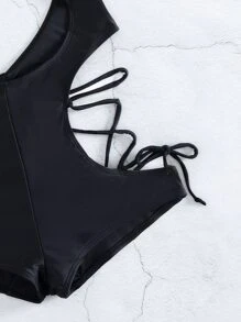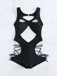 Traje de baño de una pieza con cortes y cruce en la parte delantera y con lazos a los lados, para el verano y las vacaciones en la playa