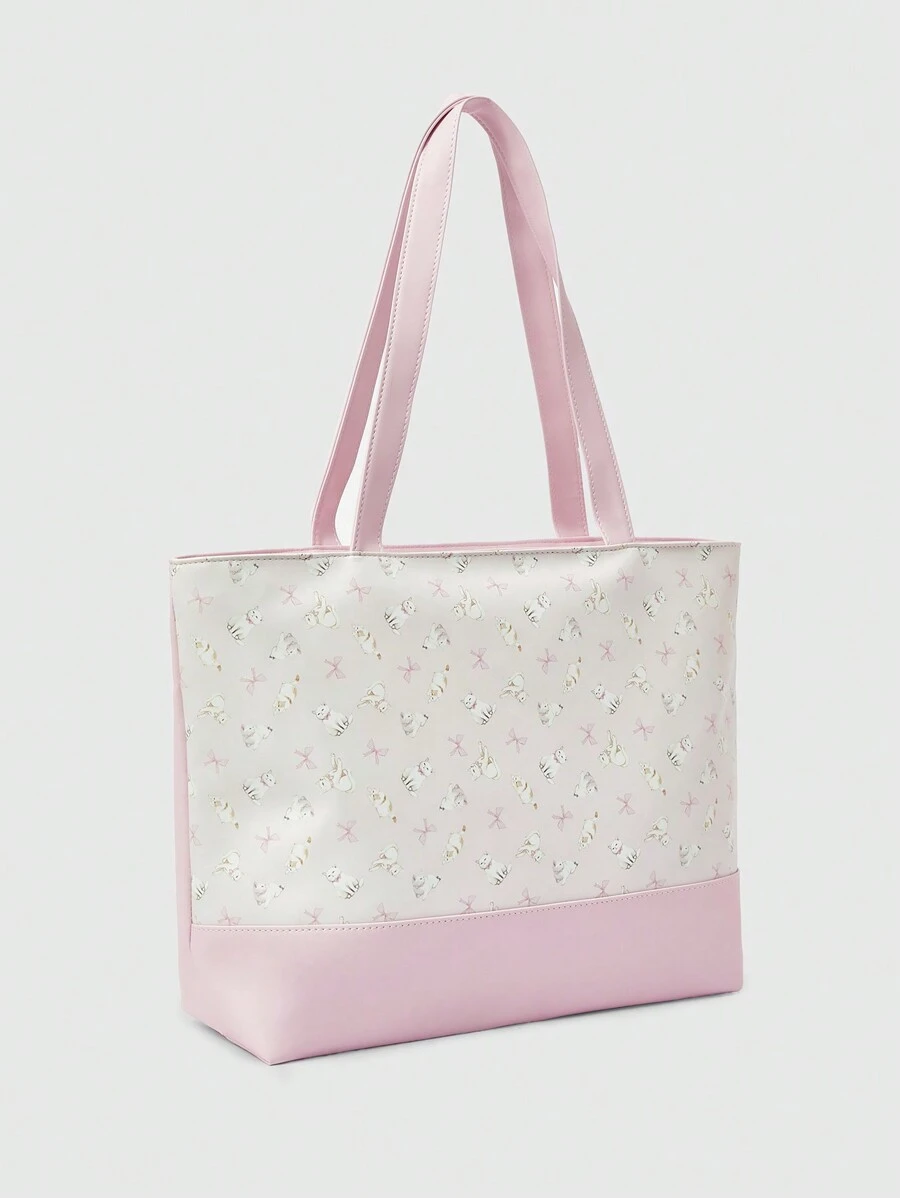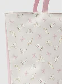 Kawaii Bolso de hombro de mujer de moda con estampado de lazo y gato lindo