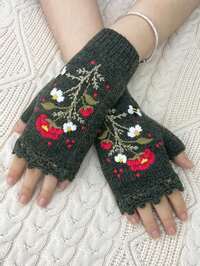 Fairycore 1 par de guantes de punto vintage bohemios y retro bordados con peonías, margaritas y abejas para mujer, ideales para uso diario, citas, fiestas y regalos