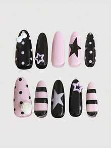 Kawaii Puntas de uñas postizas hechas a mano con alas de metal en forma de corazón romántico con encaje, nota musical y serie rosa, estilo de bailarina, adecuadas para salidas diarias y citas. Producción masiva, diseño enérgico para niñas.