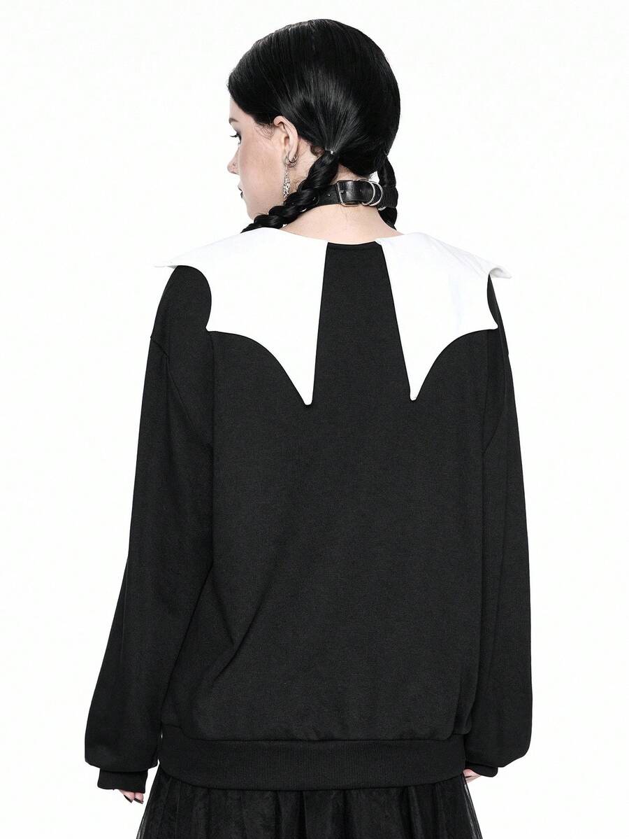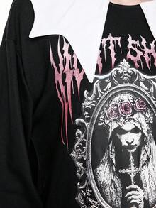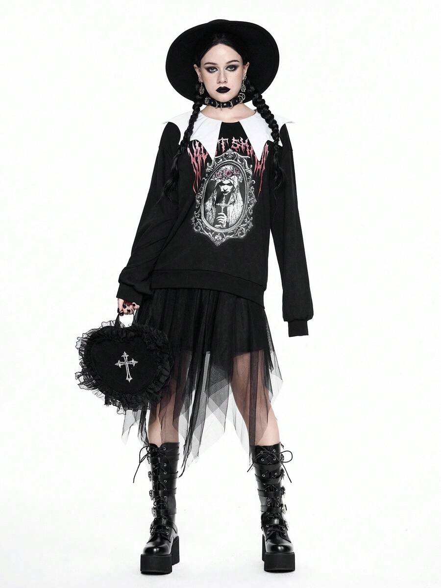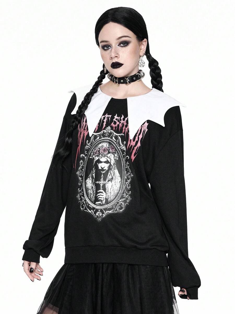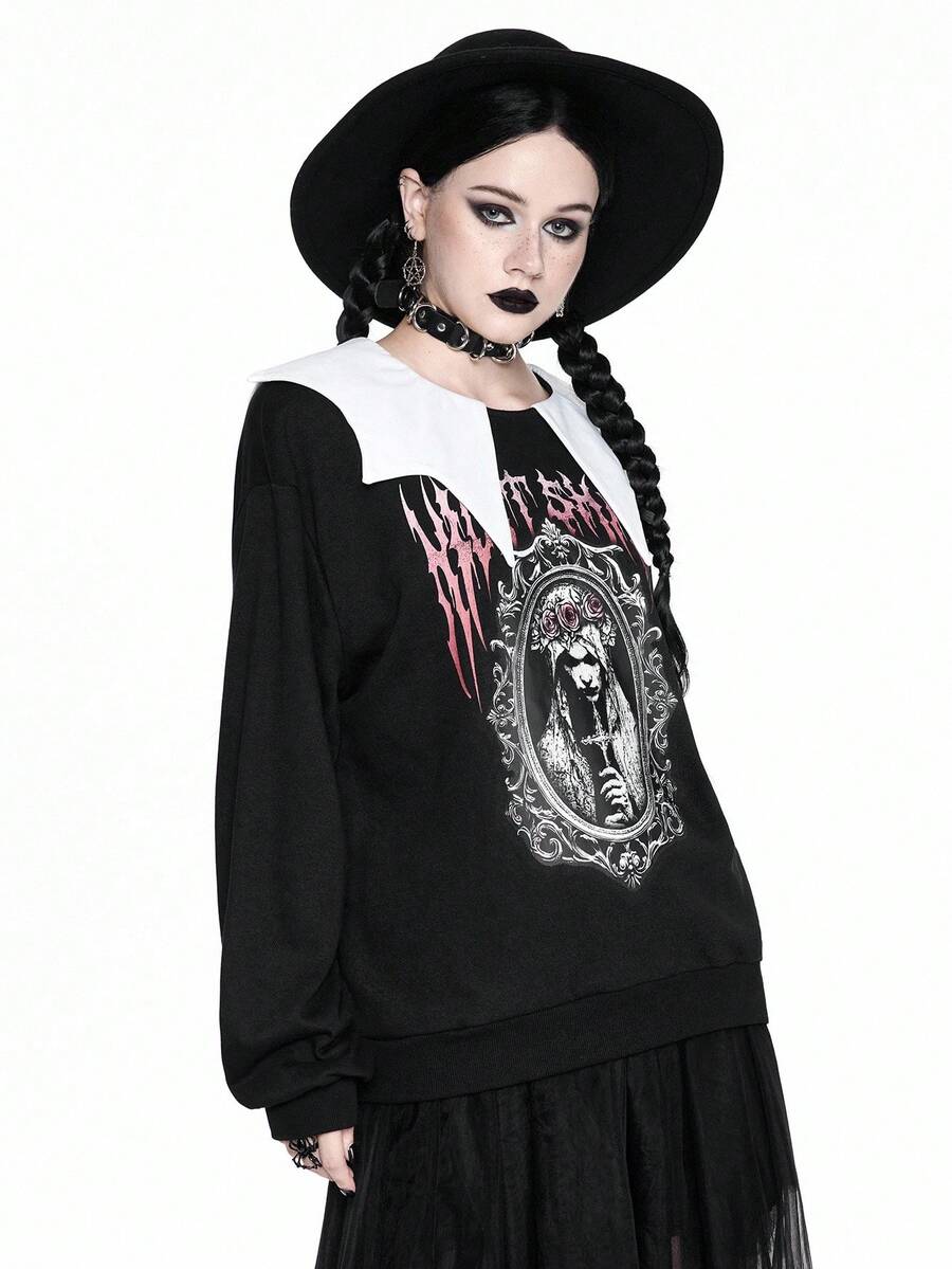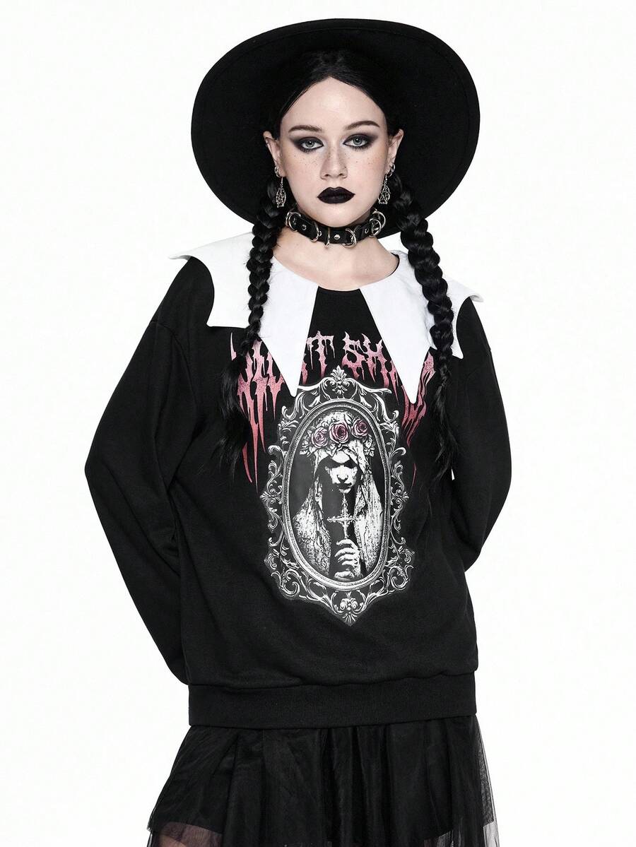 Goth Sudadera holgada de felpa con estampado de novia y murciélago gótico travieso y lindo para mujeres