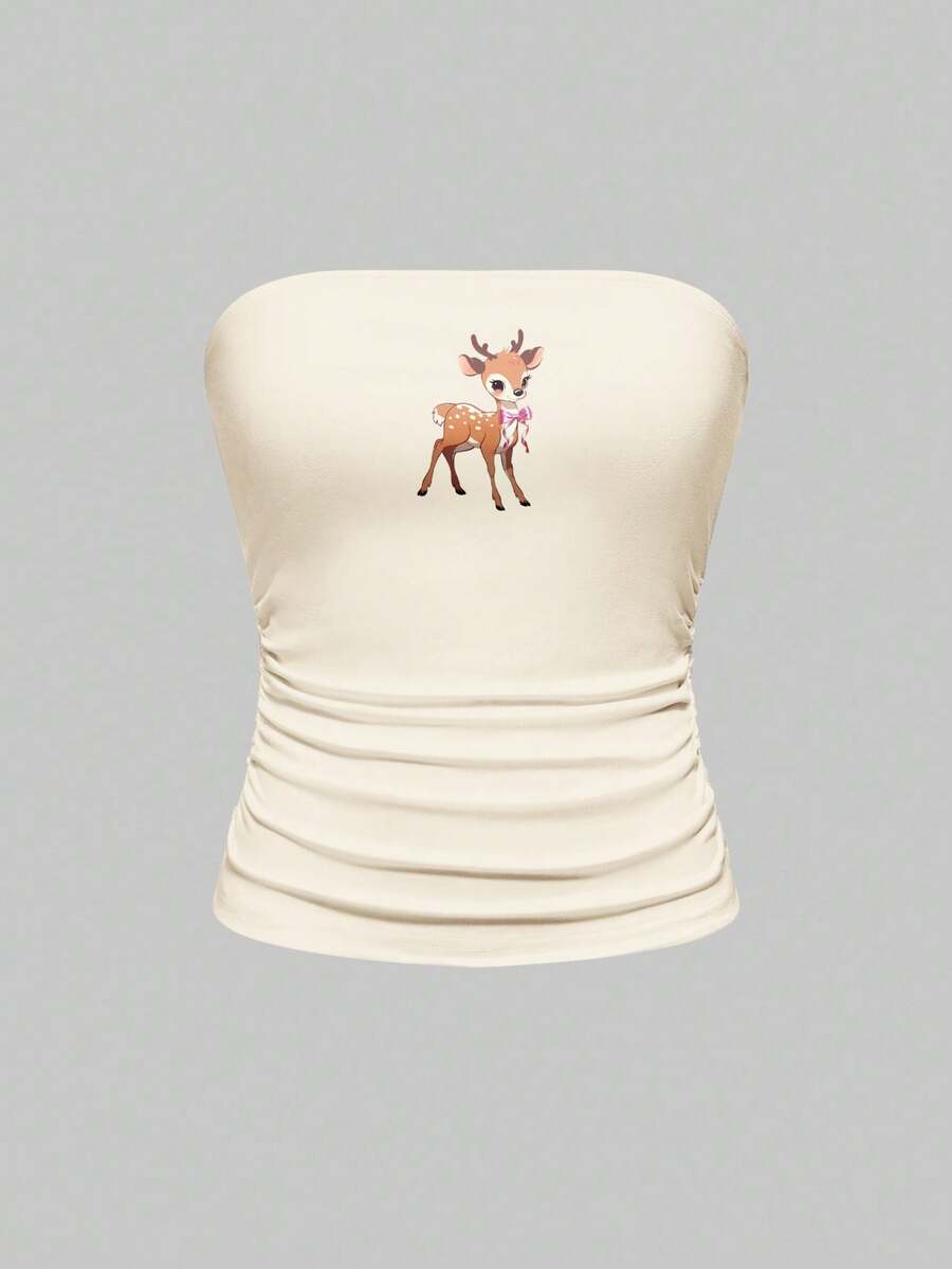 Fairycore Top corto con diseño vintage, sin tirantes, sexy e inocente con lazo, corazón, color rosa y beige, estilo Y2K, sin espalda para mujeres
