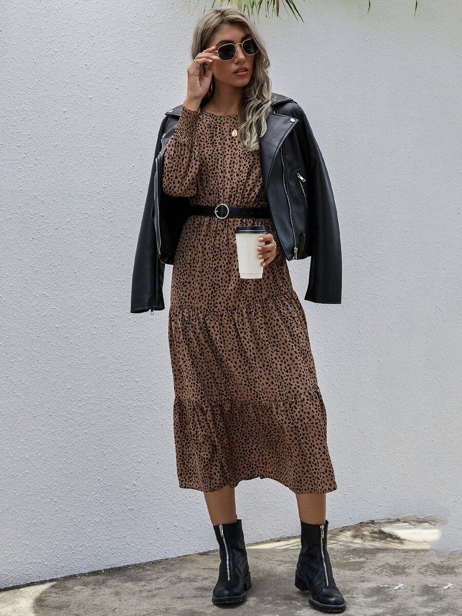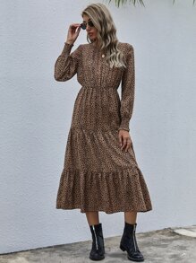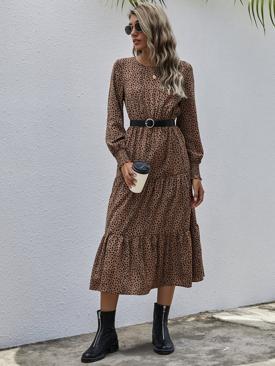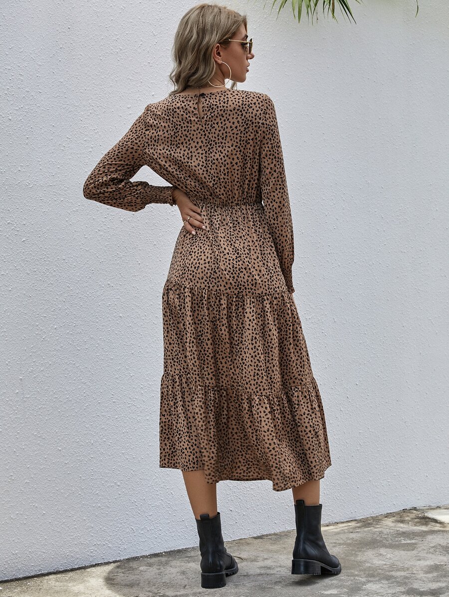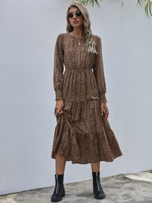 Vestido bajo fruncido con estampado de lunares