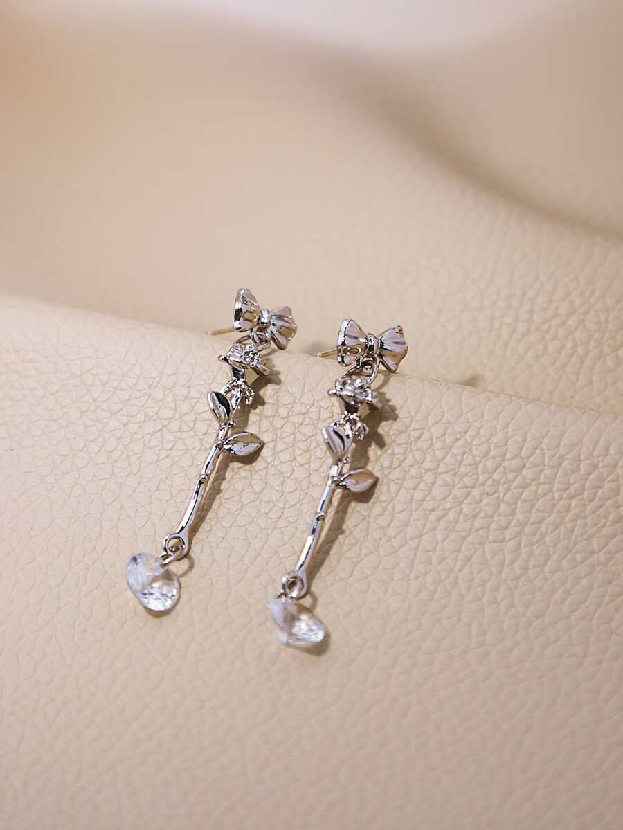 Mujer 1 par Pendientes largos atractivo aleación de zinc con diseño de flor y lazo para para decoración diaria