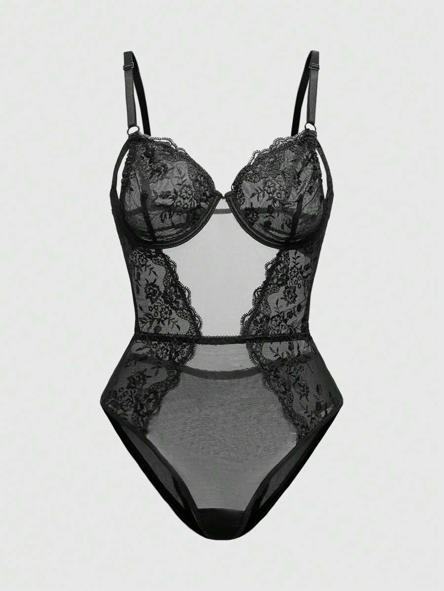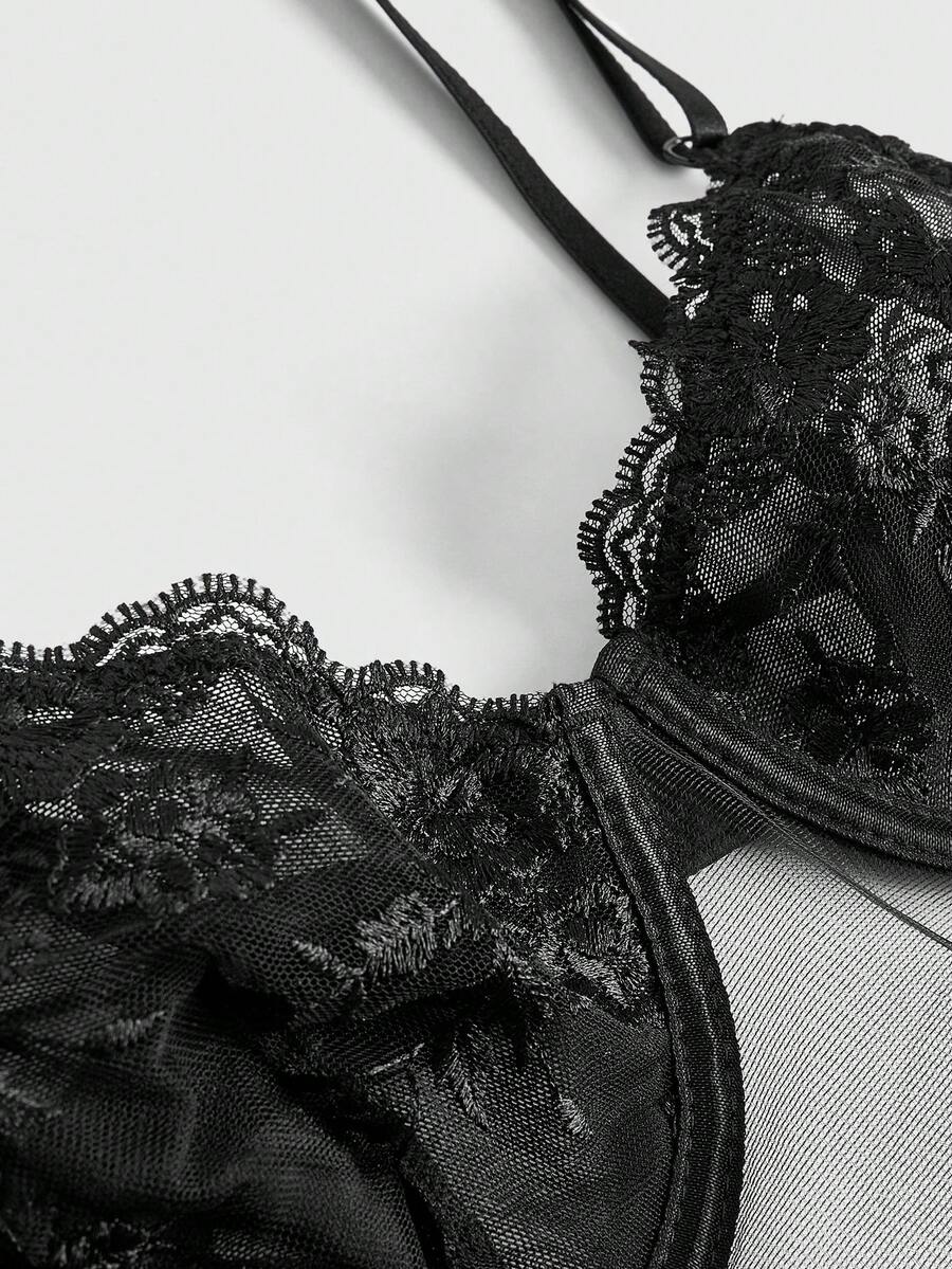 Goth Body sexy con encaje floral de estilo gótico oscuro y con borde de alambre
