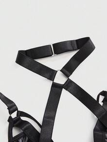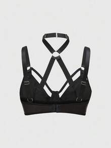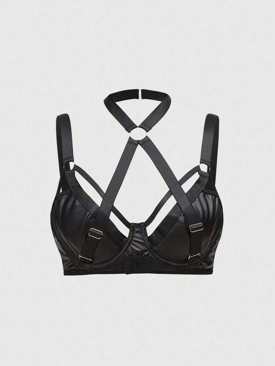 Grunge Punk Sujetador negro de unicolor con aro interior, estilo punk oscuro de PU