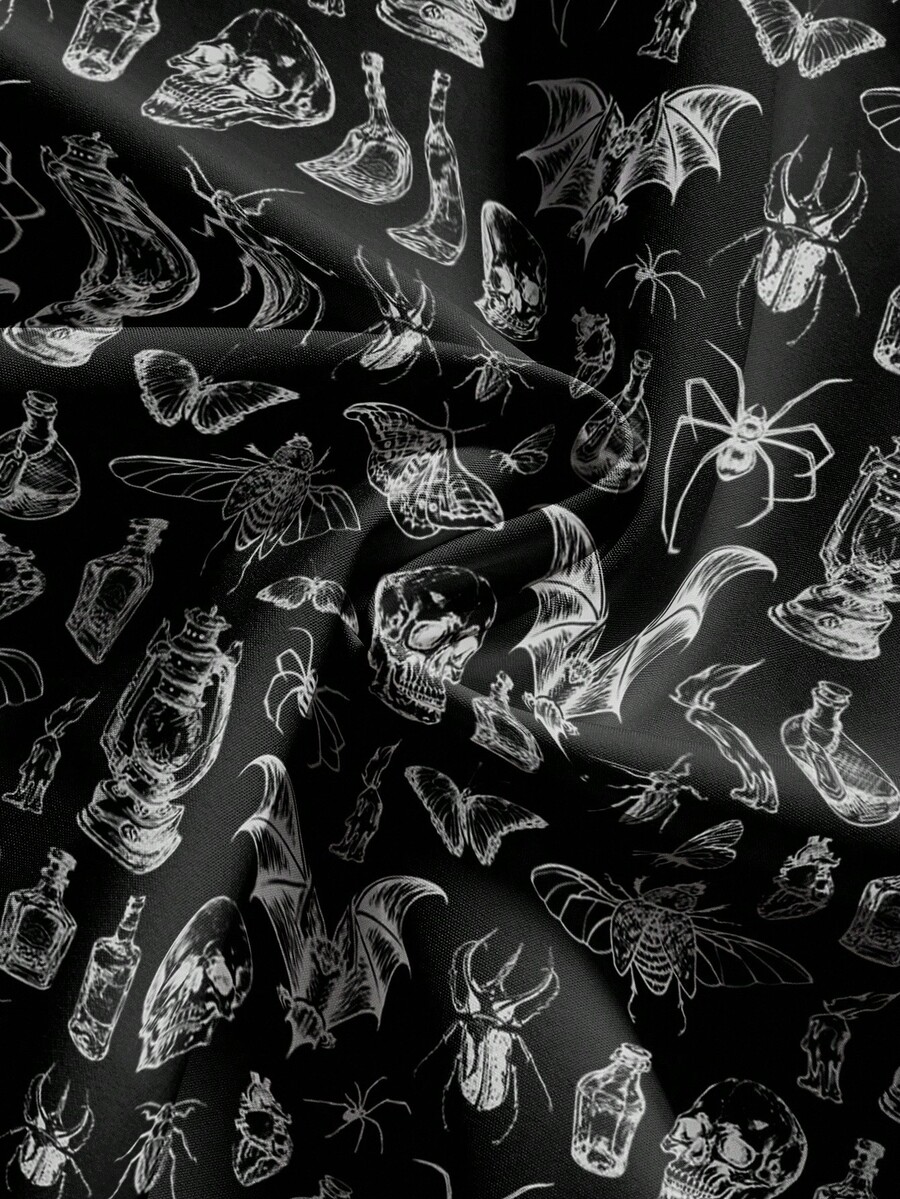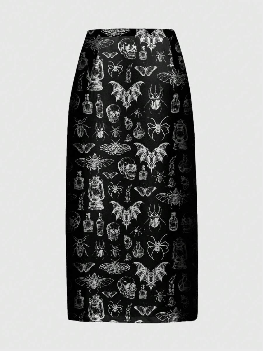 Goth Falda larga de mujer con abertura sexy, con estampado oscuro de bosque de horror con calavera, polilla, araña y murciélago de la Academia Cuervo Oscuro, para Halloween