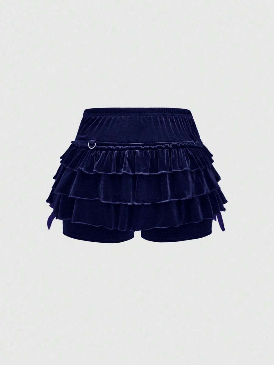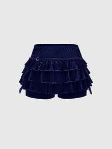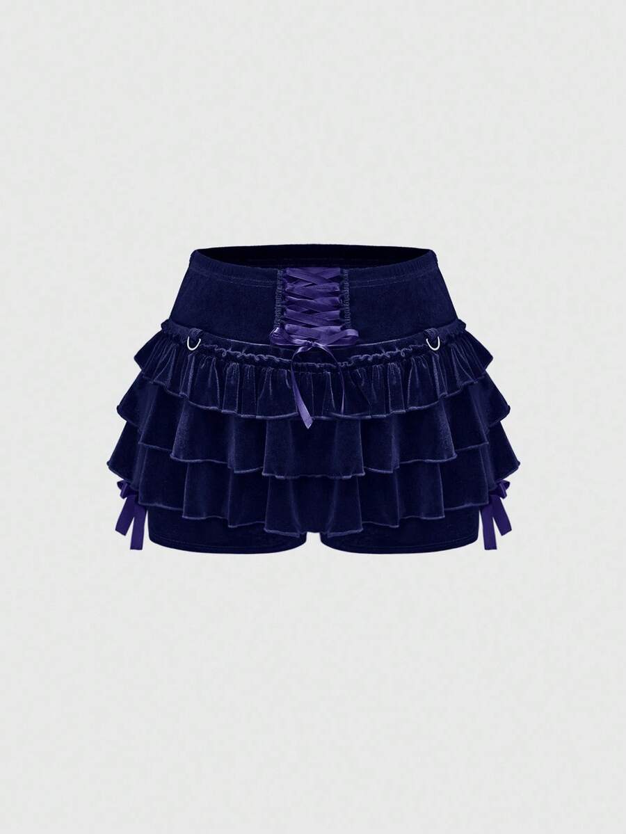 Goth Pantalones cortos con volantes de terciopelo retro oscuro, con lazo delantero y diseño anti-deslumbramiento para mujeres