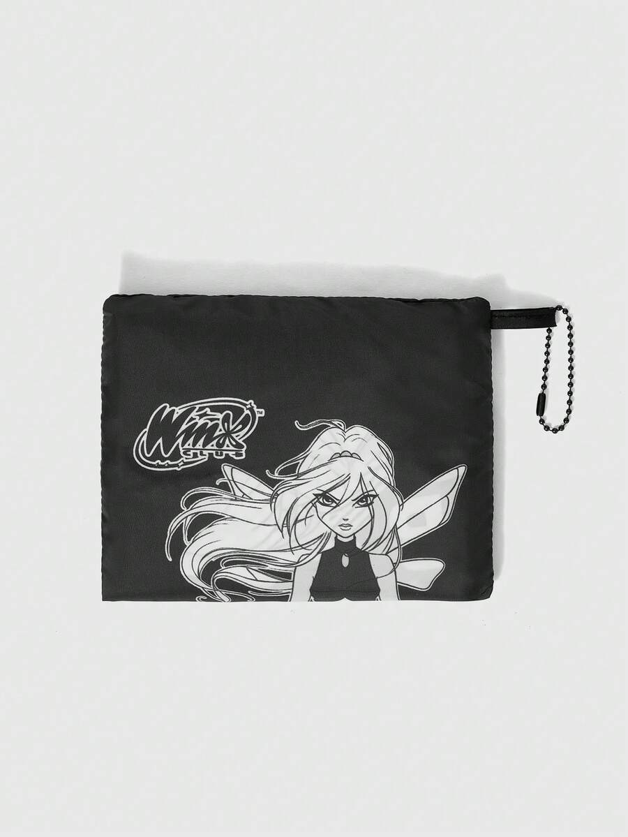 Winx Club X ROMWE Bolso de tela grande y plegable de tonos oscuros con monedero, bolsa de compras portátil de alta capacidad