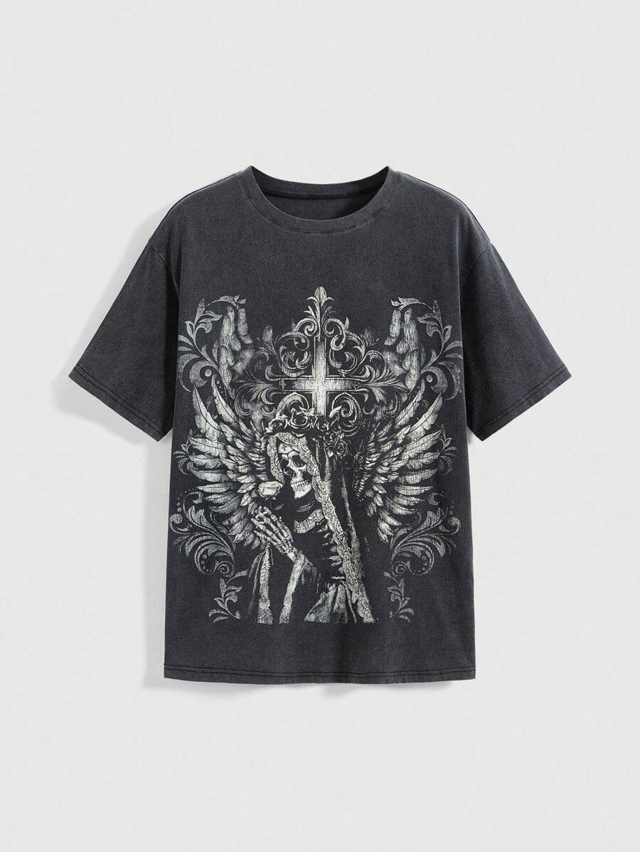 Grunge Punk Camiseta holgada de mujer con estampado divertido de gato en tela esponjosa con efecto desgastado, para Halloween
