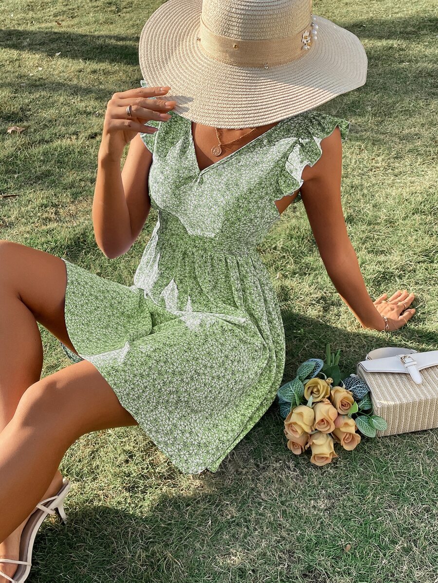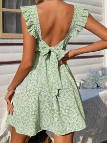 Vestido floral de espalda abierta con nudo ribete con fruncido