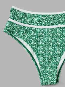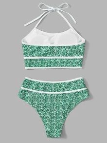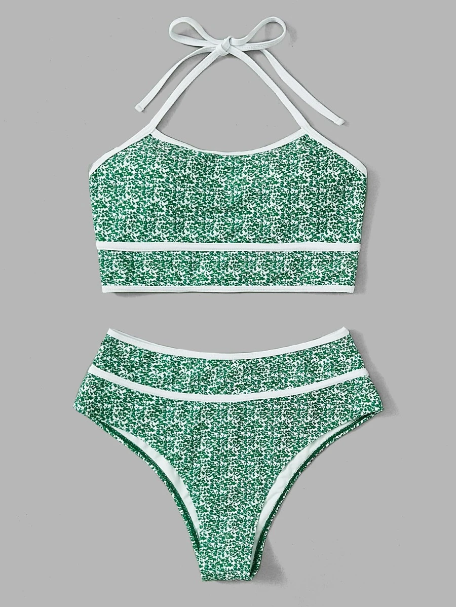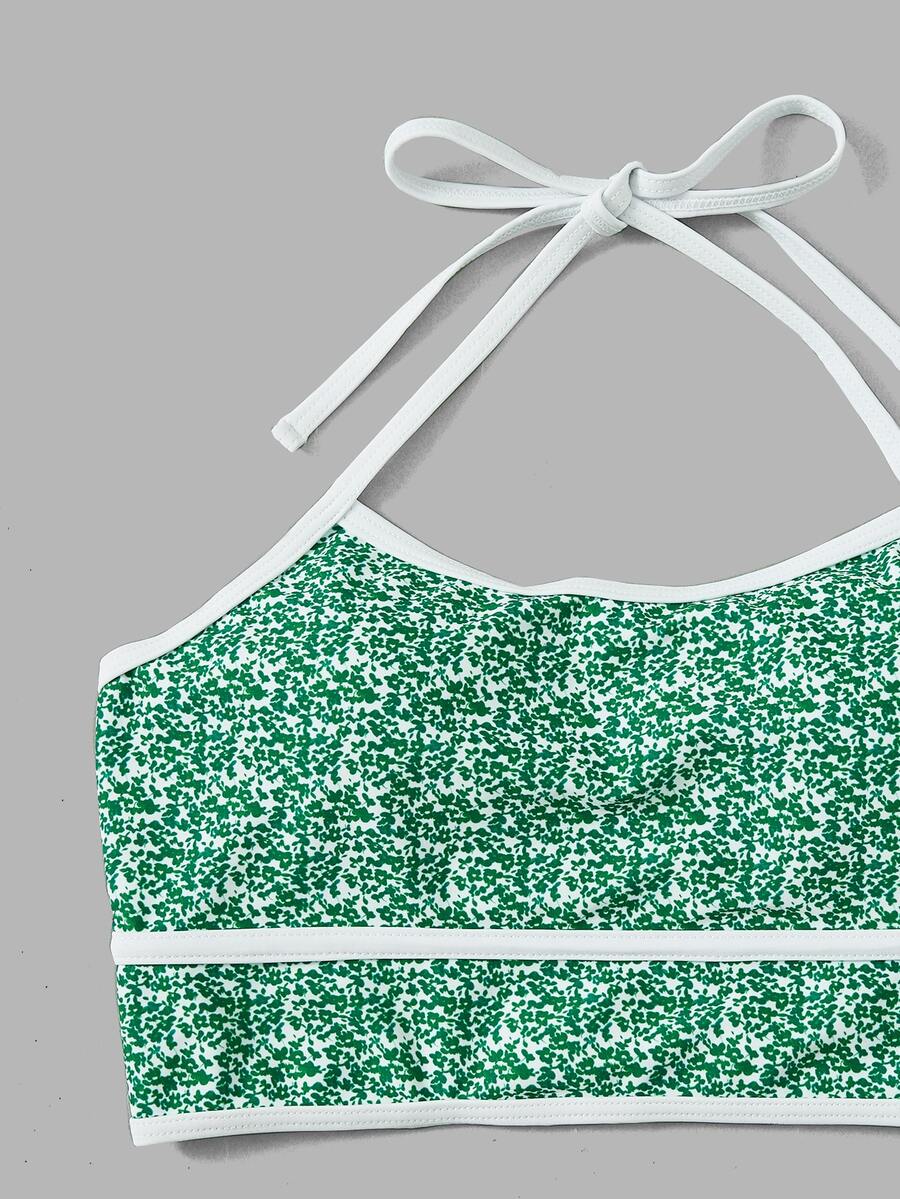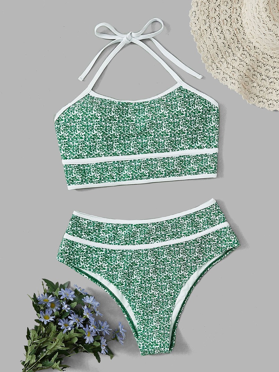 Bikini halter con diseño floral pequeño y ribetes de contraste