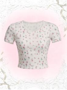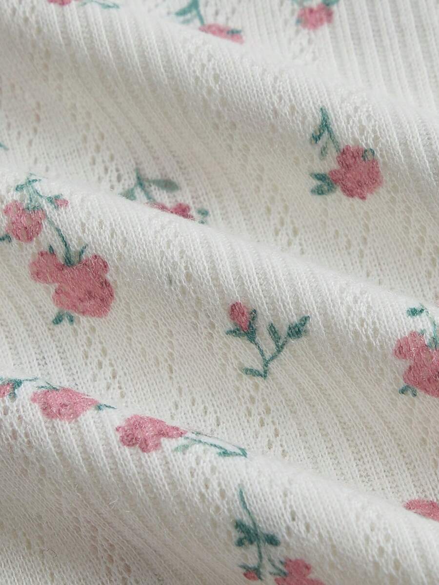 Camisetas de Mujer Encaje en contraste floral de margarita Casual