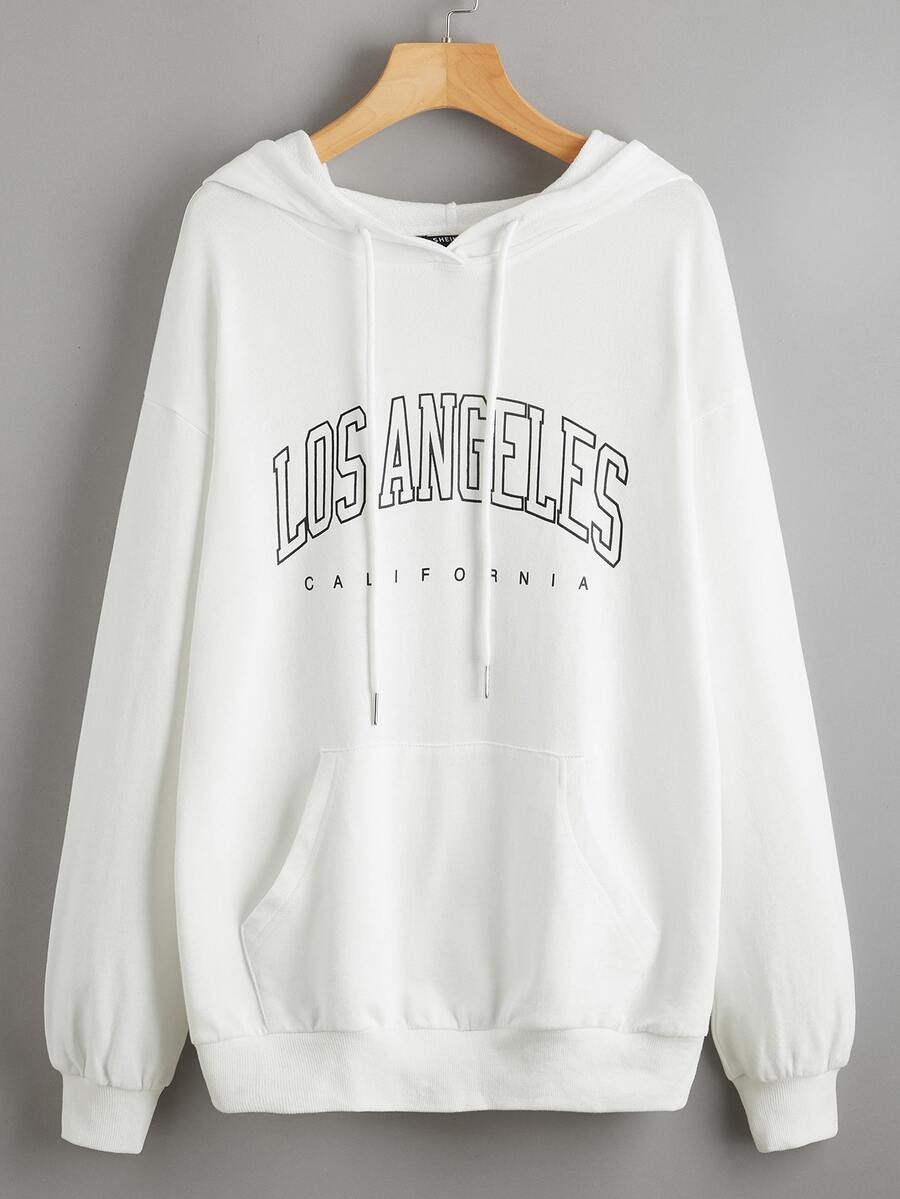 Capucha con estampado de letra con bolsillo delantero con cordón