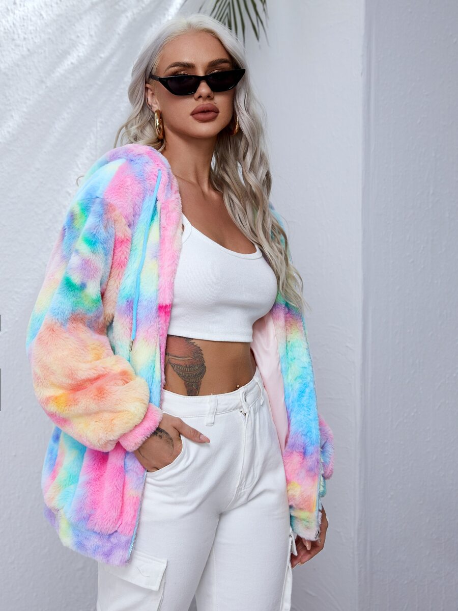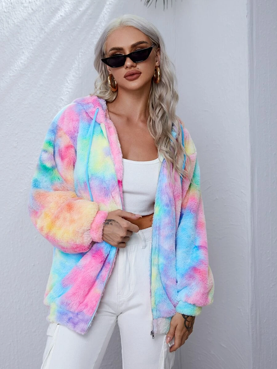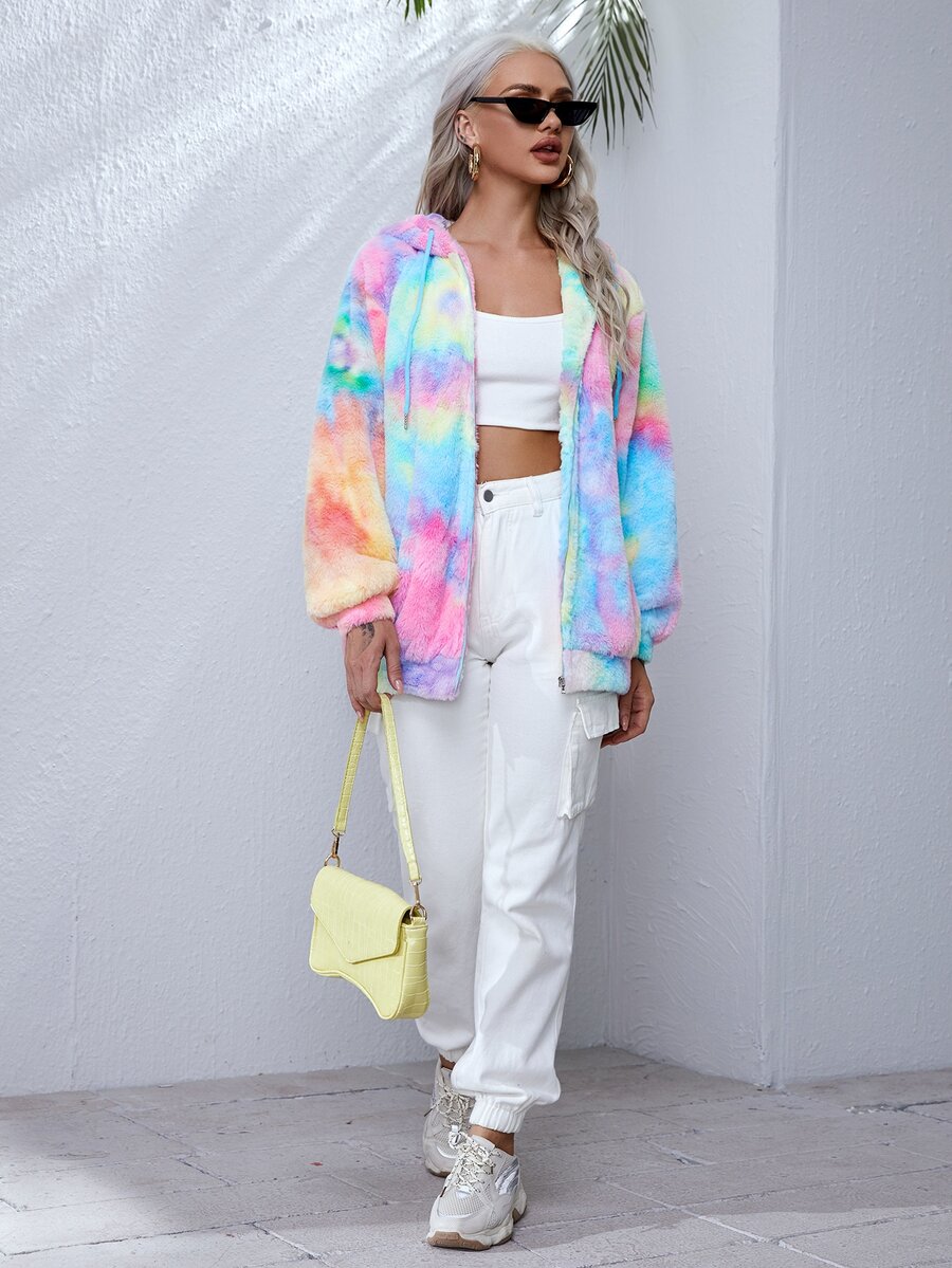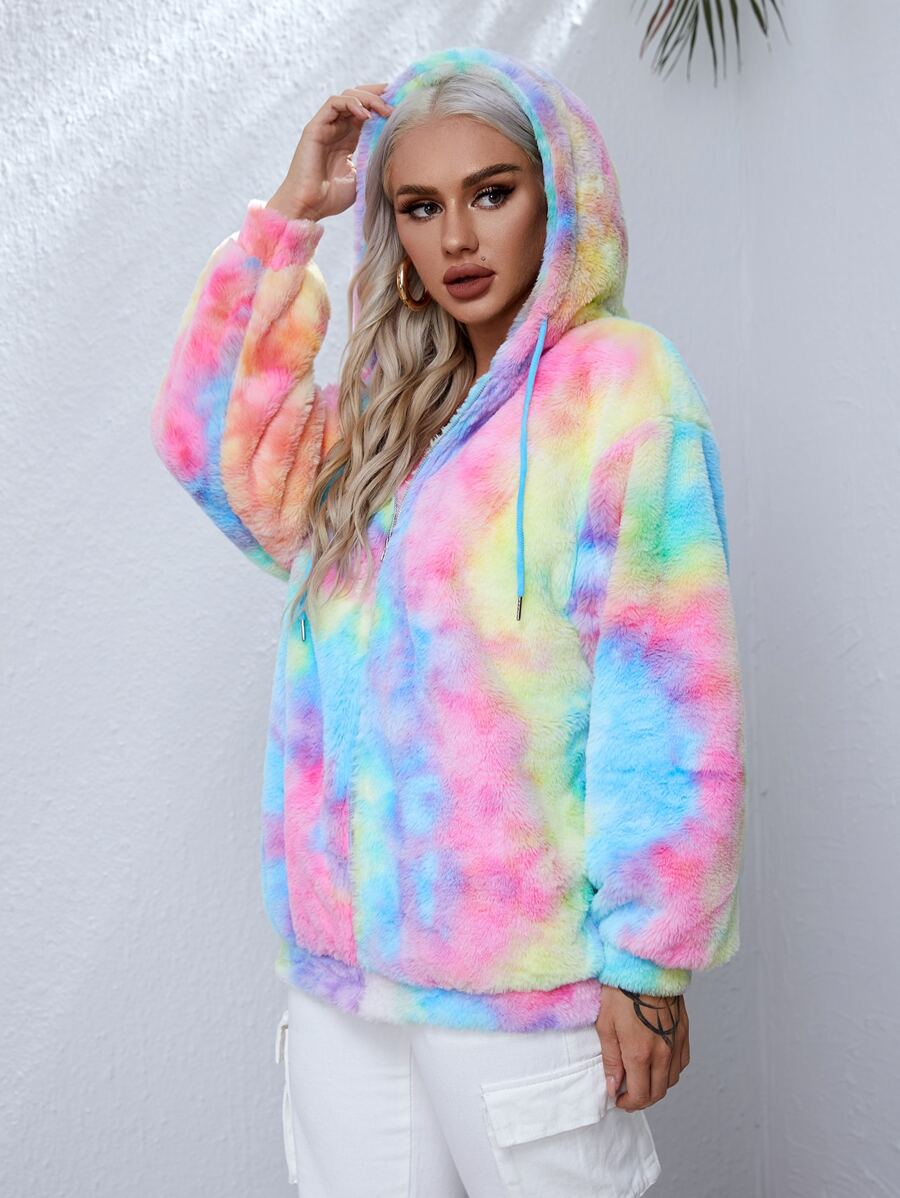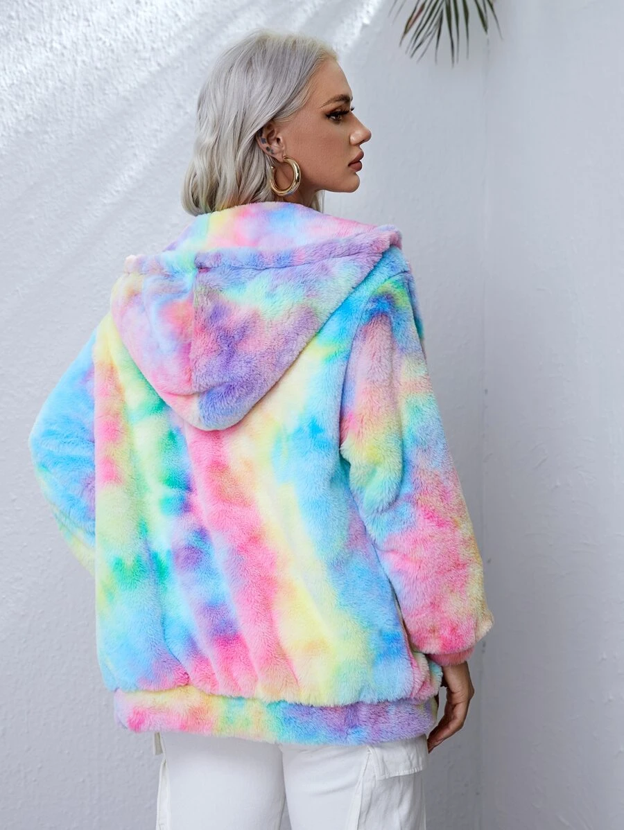 Abrigo teddy de tie dye con capucha con cordón