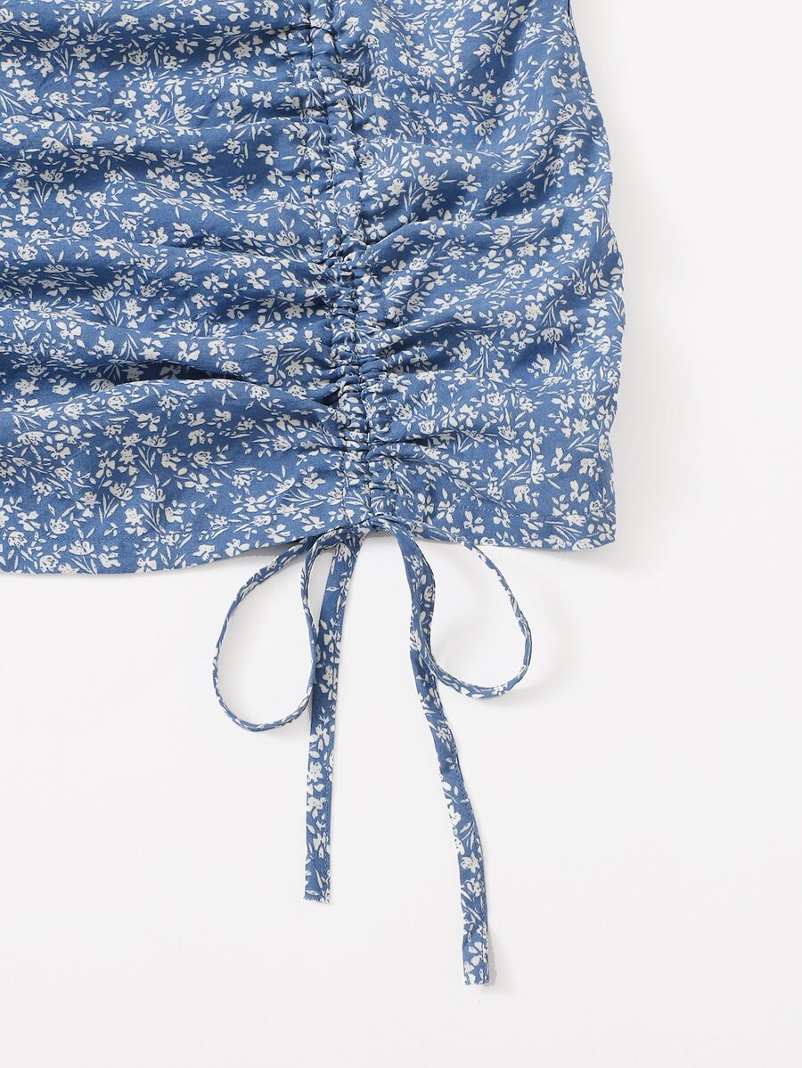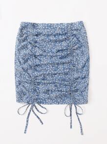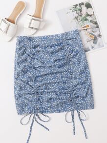 Falda floral de margarita con fruncido con cordón