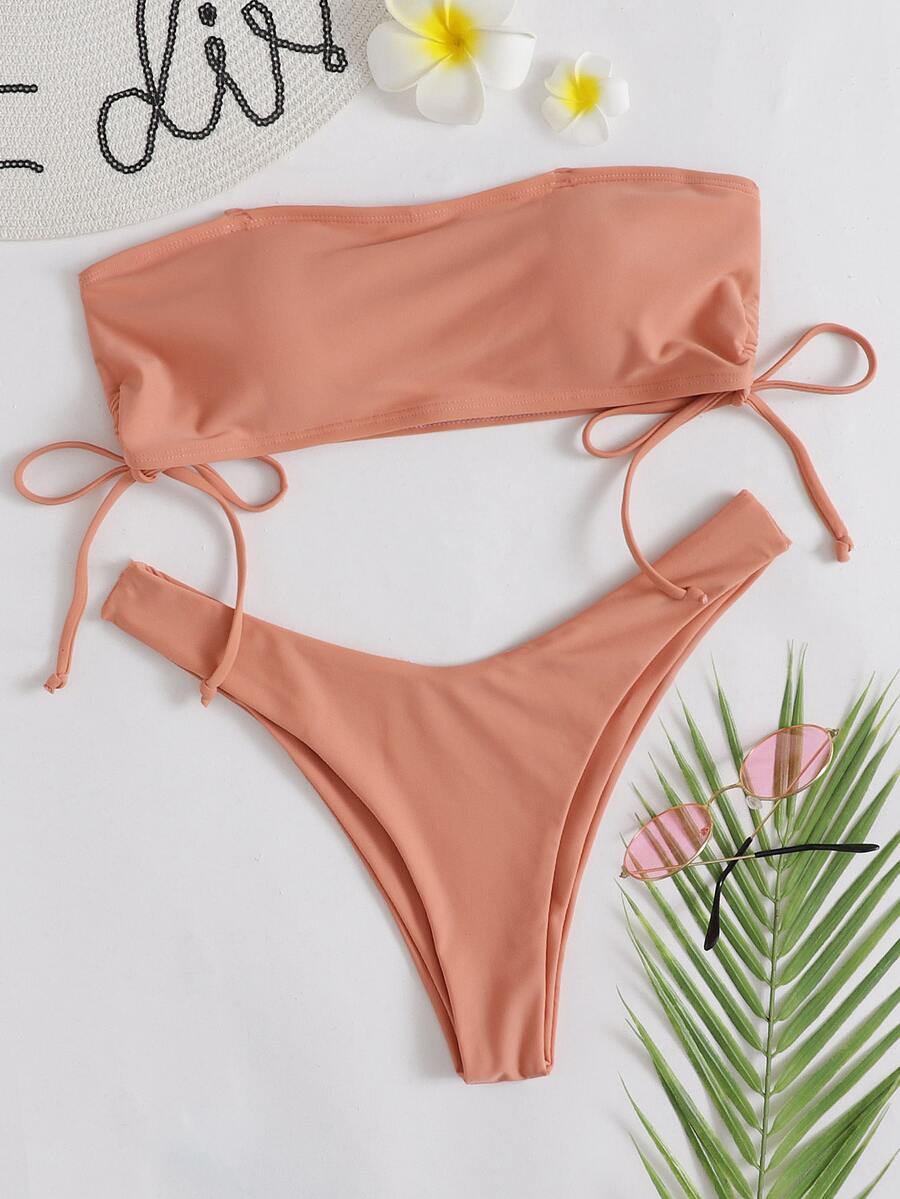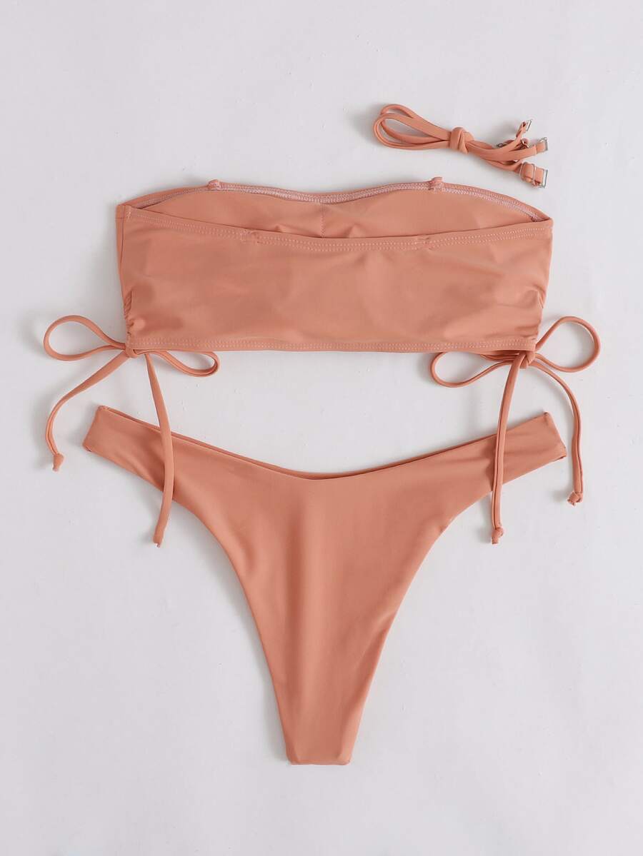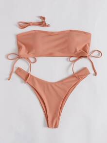 Conjunto de bikini bandeau de pierna alta con cordón lateral para playa de verano