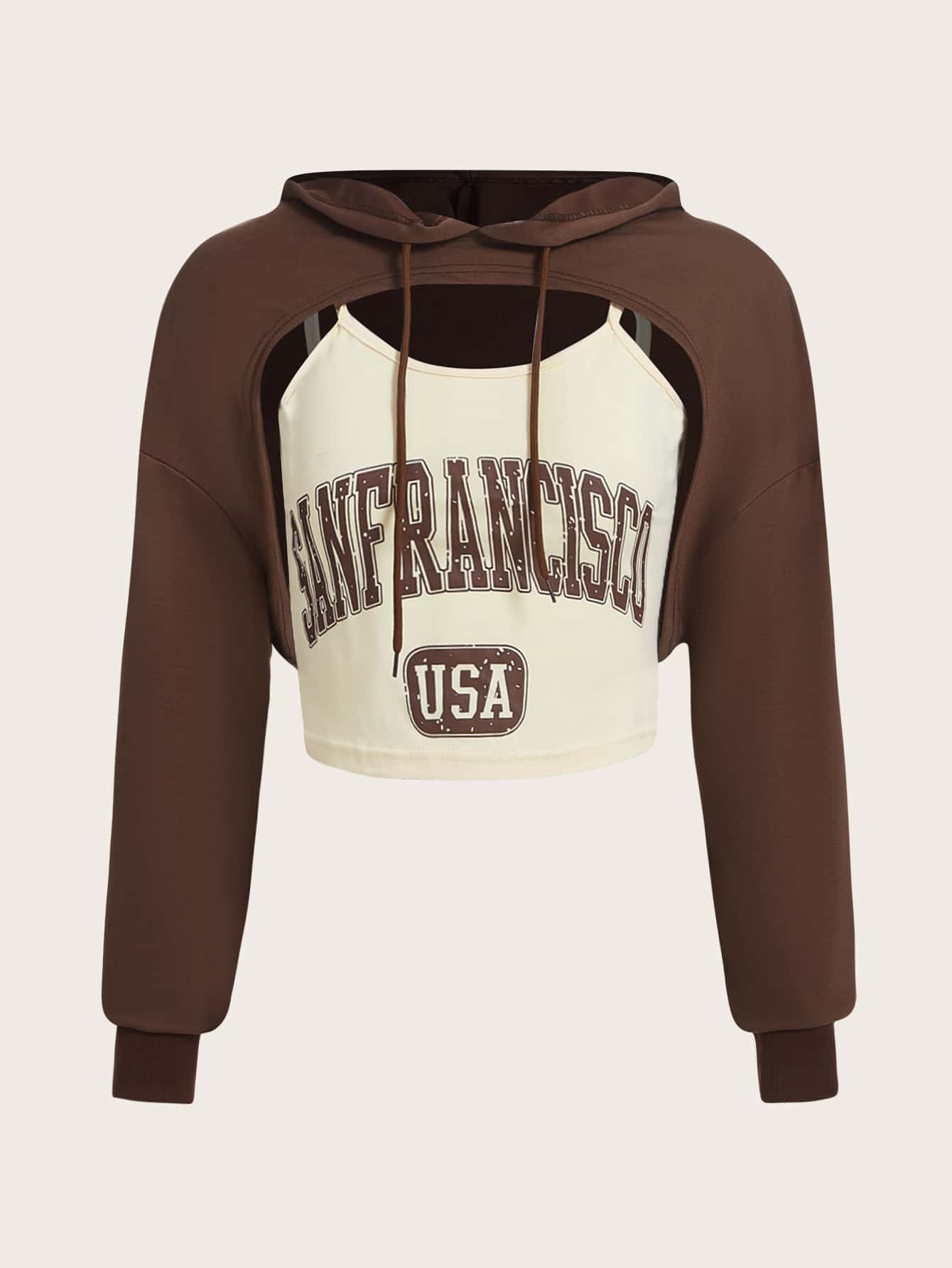 Capucha corta de hombros caídos & Top de tirantes con estampado de letra