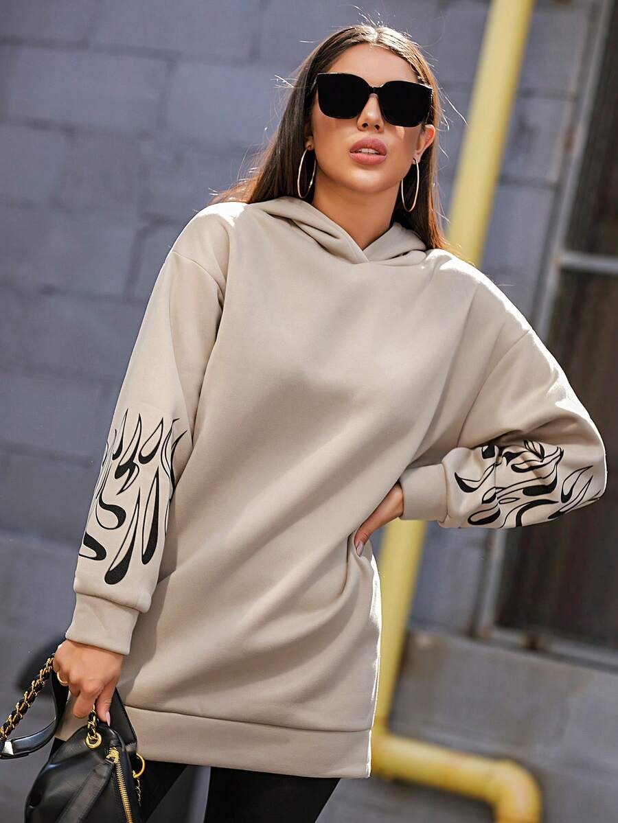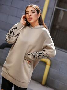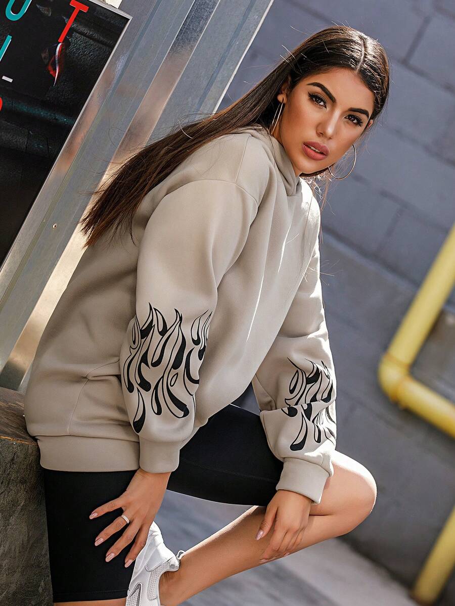 Capucha larga térmica con estampado de fuego de hombros caídos