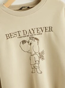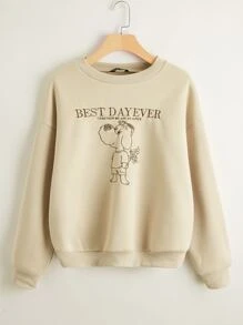 Sudadera con estampado de perro de dibujos animados y letra de hombros caídos