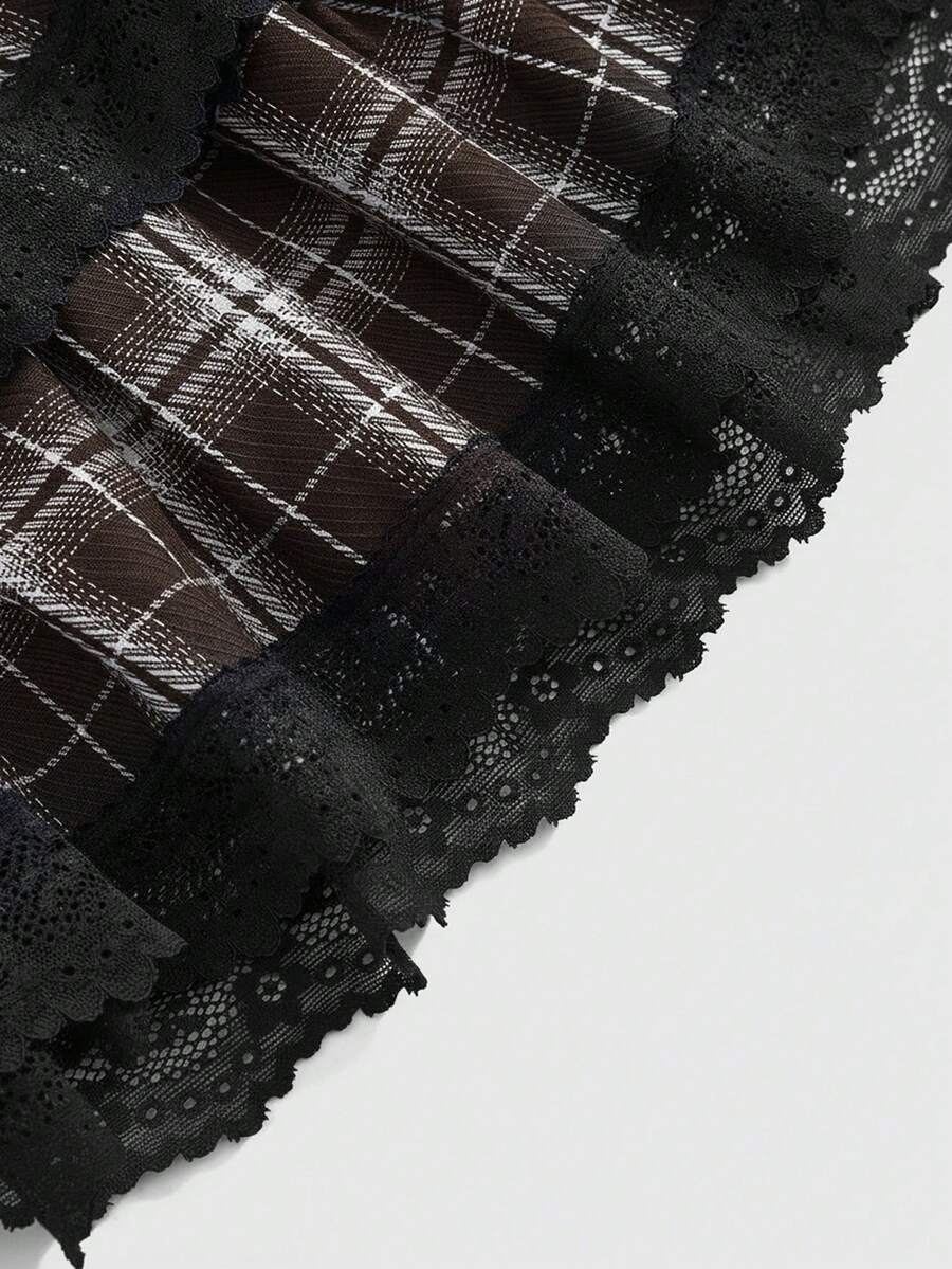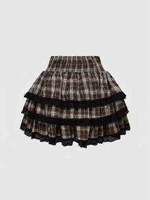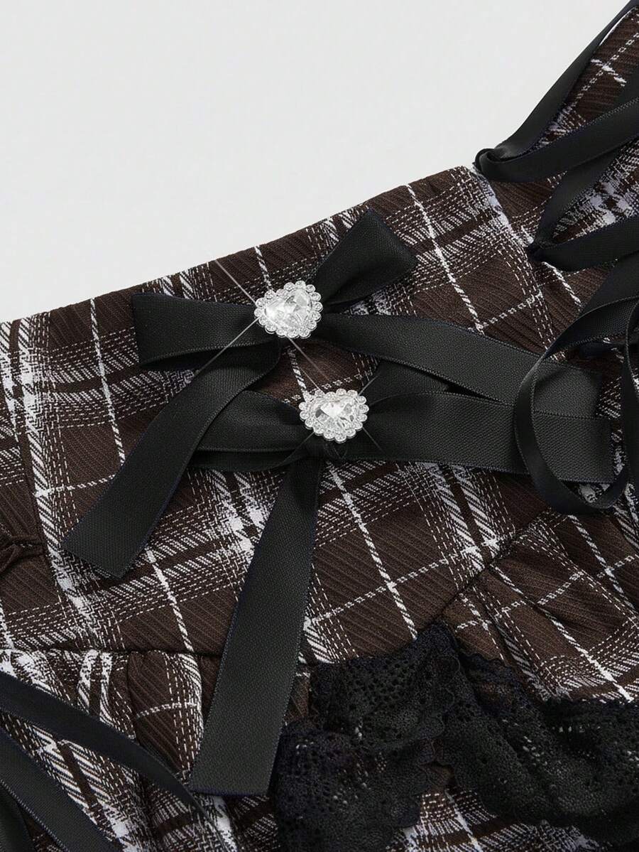 EDITION Falda de mujer con cintura alta, decorada con lazo y estampado de cuadros
