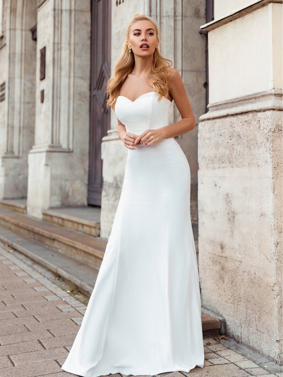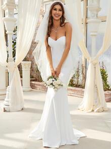 EVERPRETTY Vestido Largo Y Ajustado Estilo Sirena Con Dobladillo Y Sin Tirantes Para Fiestas