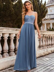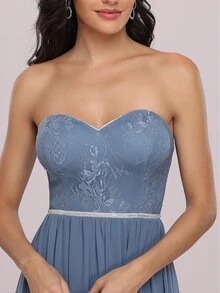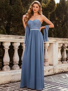EVERPRETTY Vestido con encaje con bordado de espalda abierta sin pañuelo