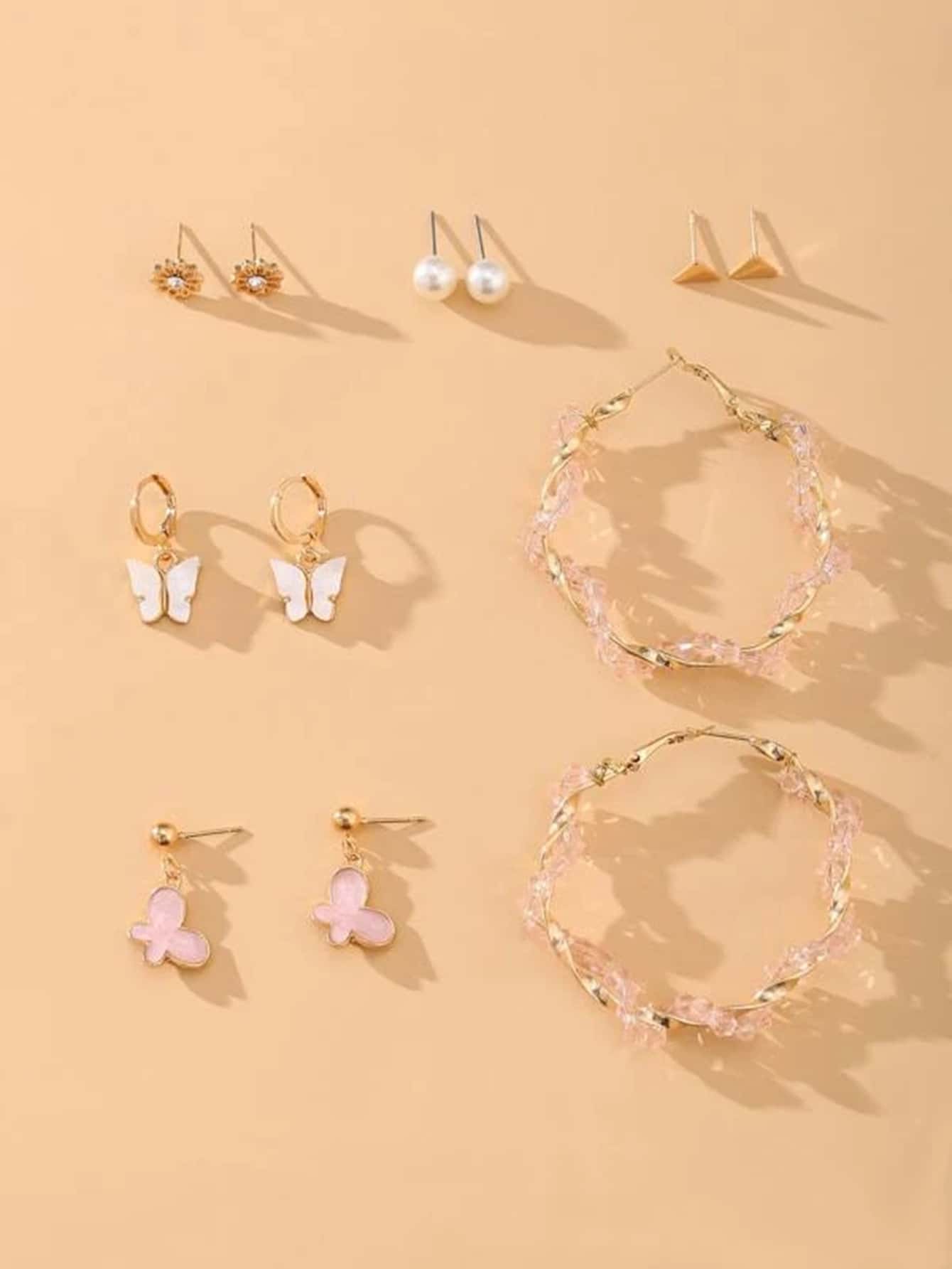 6 pares Pendientes largos con mariposa