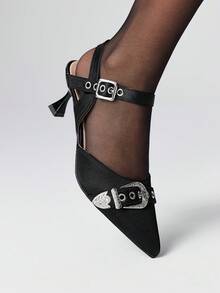 Goth Zapatos de tacón alto puntiagudos de mujer de color negro de moda elegante y casual con hebilla de metal y diseño de moño, apropiados para fiestas, uso diario y ocasiones formales, aumentan la altura y da sensación de piernas talla grande largas, tacones altos versátiles para damas