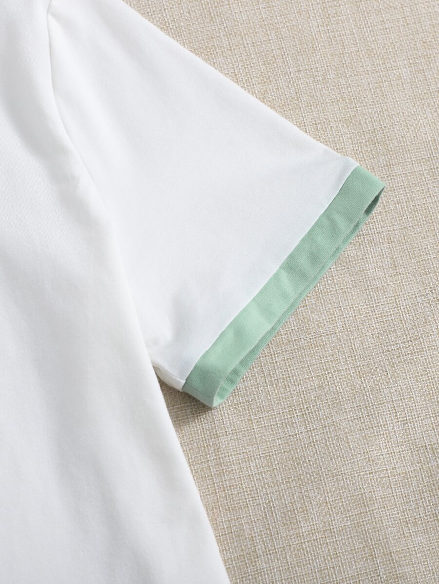 Camiseta ringer con dibujos animados con bordado