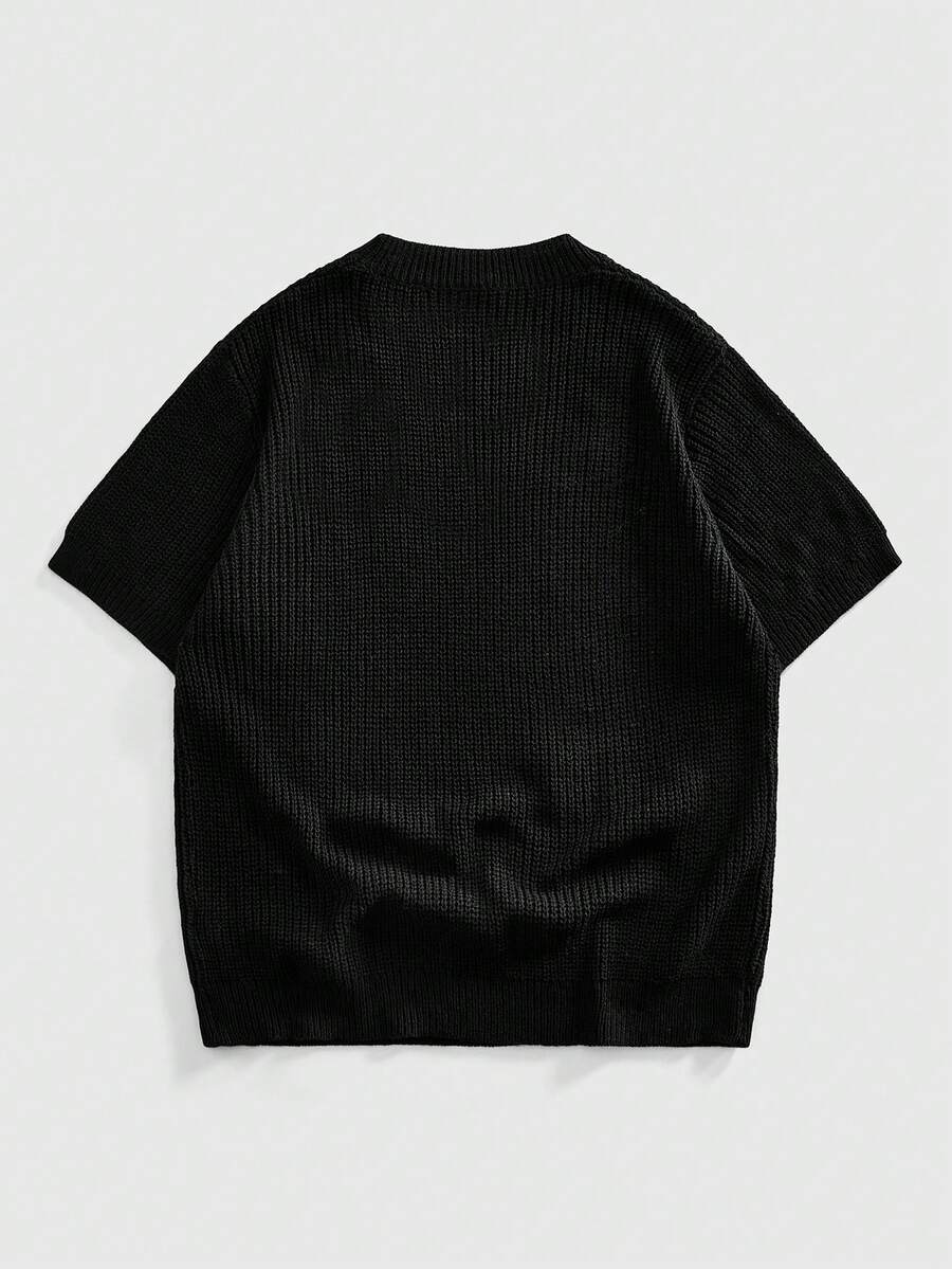 Essentials Camiseta de manga corta de punto con cuello redondo y bordado de moda callejera inglesa para hombres