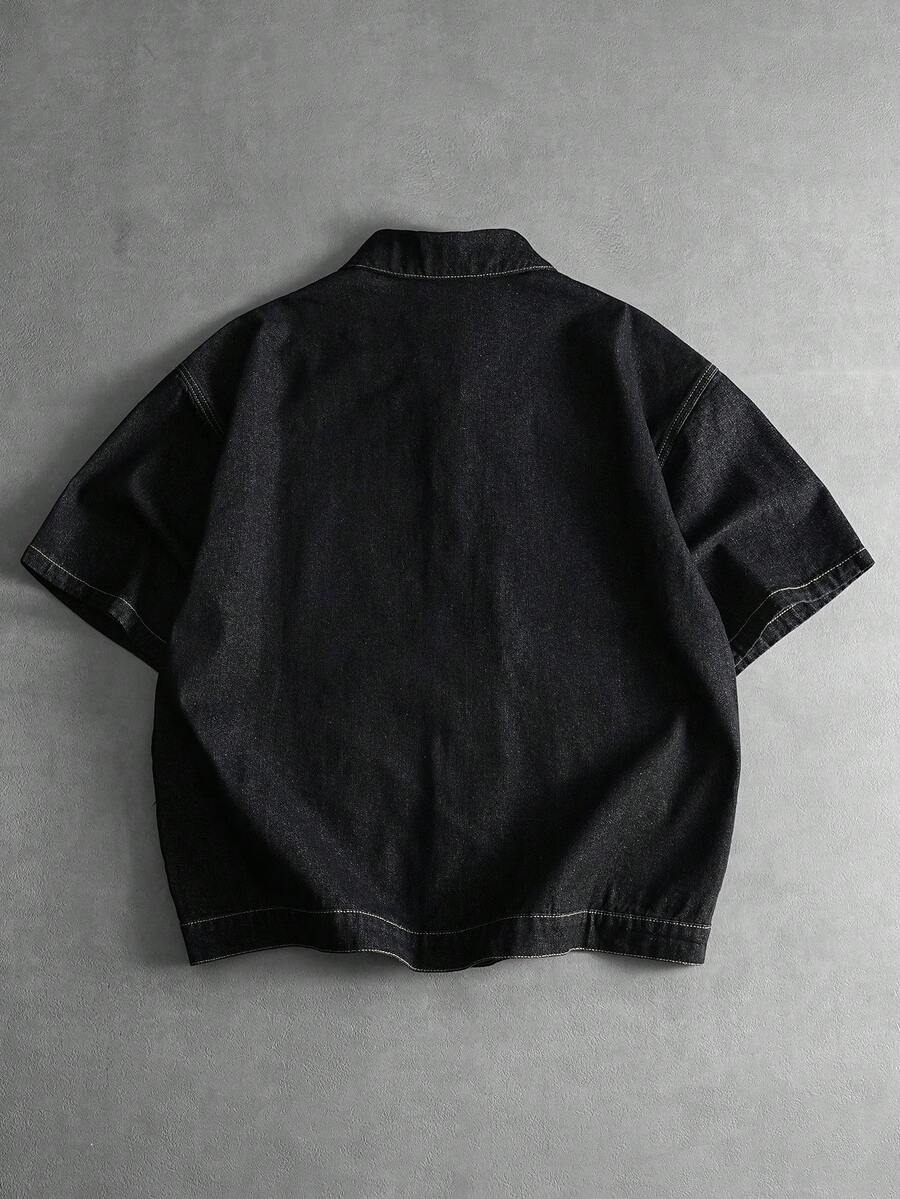 Essentials Camisa vaquera de manga corta casual y versátil con botones delanteros de unicolor para hombres