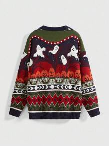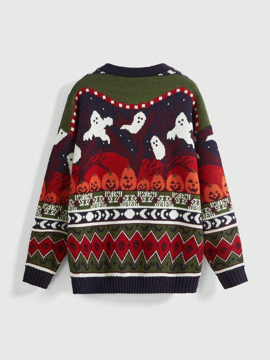 Jersey de cuello redondo con estampado Fair Isle, multicolor, adecuado para otoño/invierno y Halloween