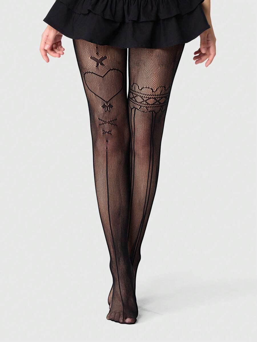 Fairycore 1 par de medias de rejilla de corazón negro para mujeres, aptas para todas las temporadas