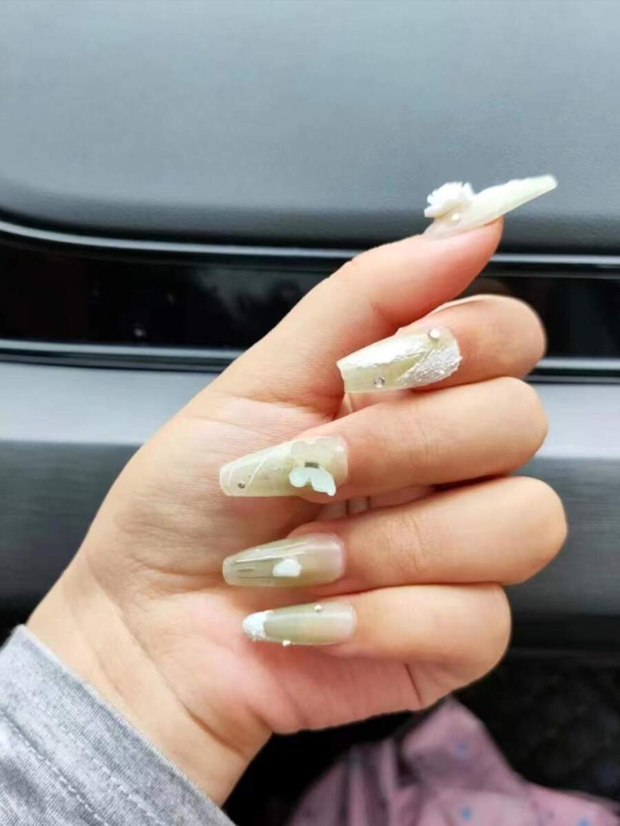 Fairycore 10 piezas Uña postiza largo ataúd 3d con diseño de flor