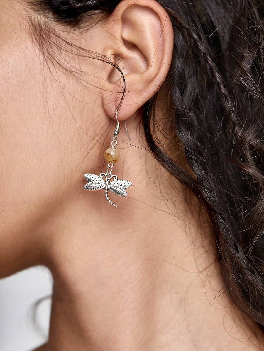 Fairycore 1 par de pendientes colgantes con diseño de libélula de aleación de Zinc a la moda para mujer para decoración diaria