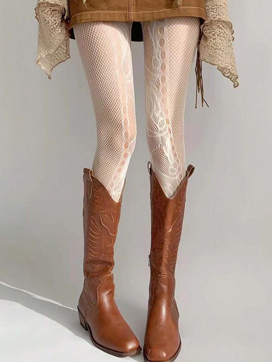 Fairycore 1 Par Medias Pantis Sexys Para Mujer Con Patrón De Flores Blancas Y Rasgado Para Las Cuatro Estaciones