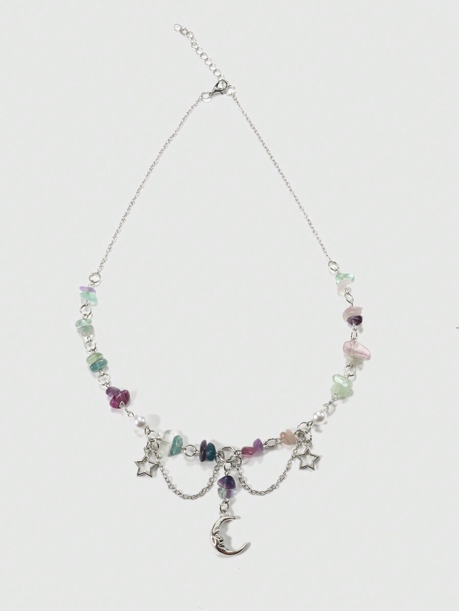 Fairycore 1 pieza collar con dije de luna y estrella de howlita a la moda para mujer para decoración diaria