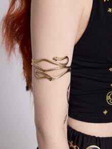 Fairycore 1 pieza Brazalete de serpiente dorado estilo punk, brazalete abierto exagerado decorado con rhinestones en forma de doble cabeza de serpiente hueca