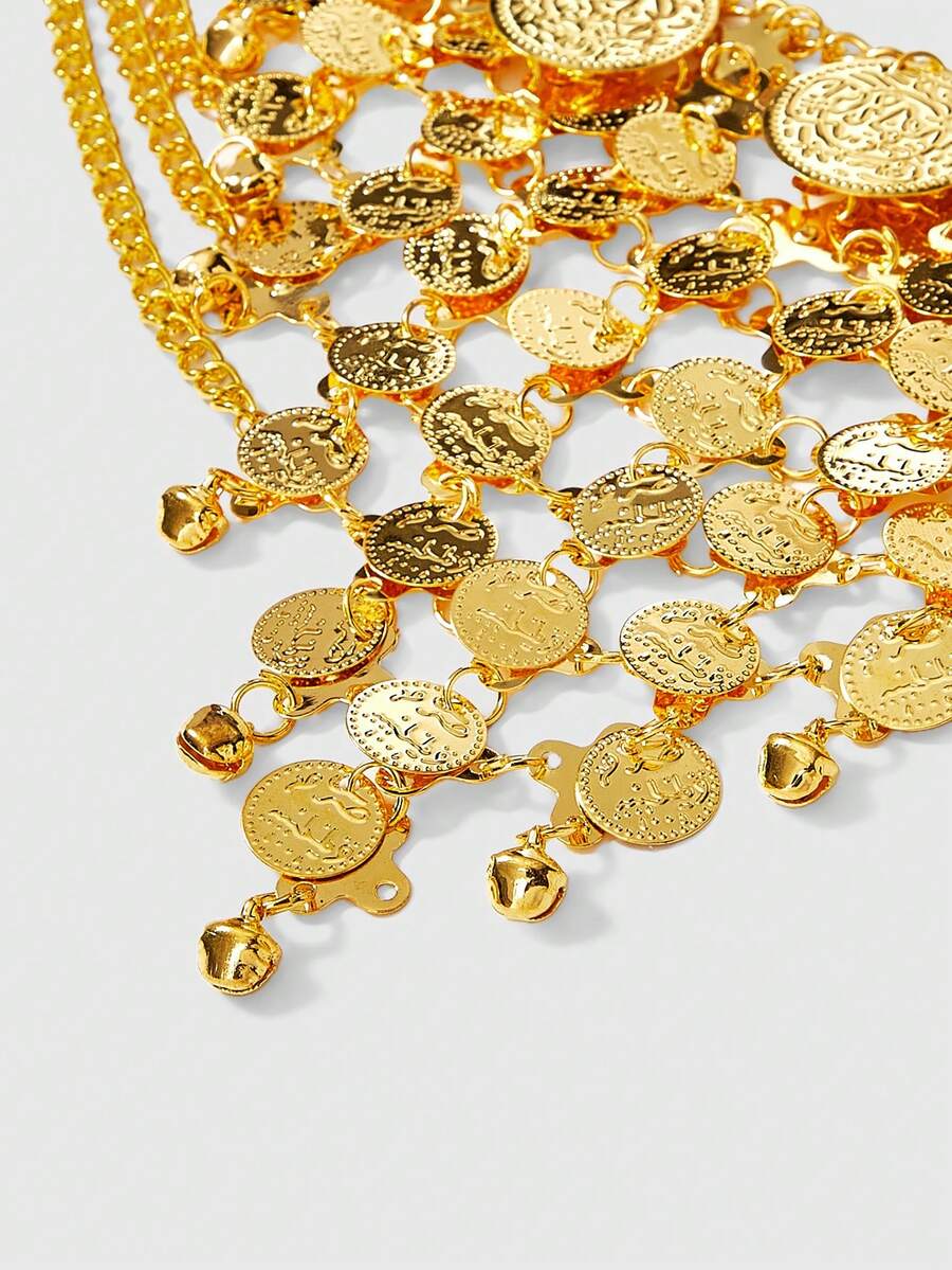 Fairycore 1 pieza Accesorio de mujer con moneda dorada, borla con campana y cadena bohemia, decoración de moneda para falda o vestido, versátil para uso diario