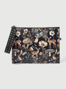 Fairycore 1 pieza Bolso de mano de mujer con diseño de seta, conejo y ciervo