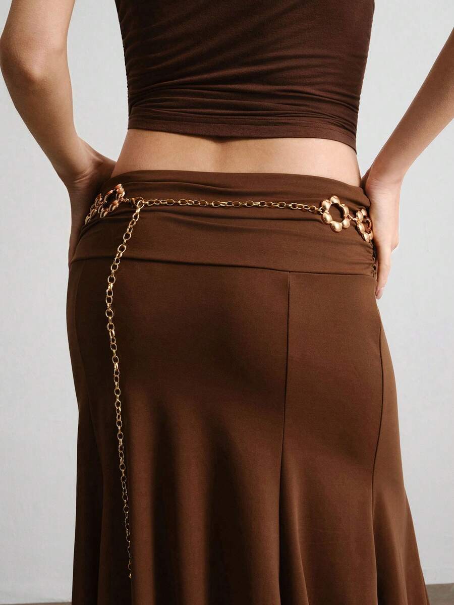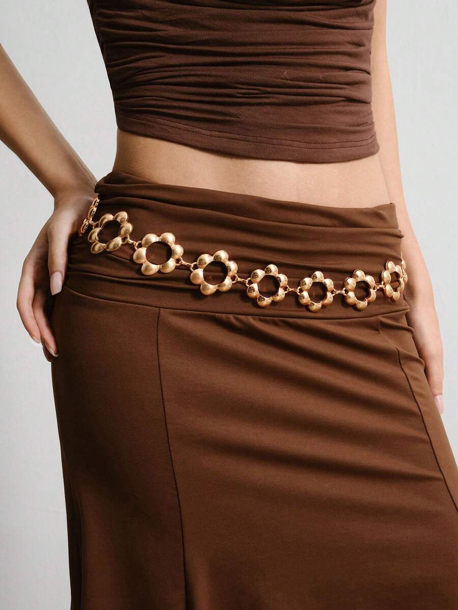 Fairycore 1 pieza Cadena de cintura con forma de flor hueca de oro para mujer, versátil para uso diario
