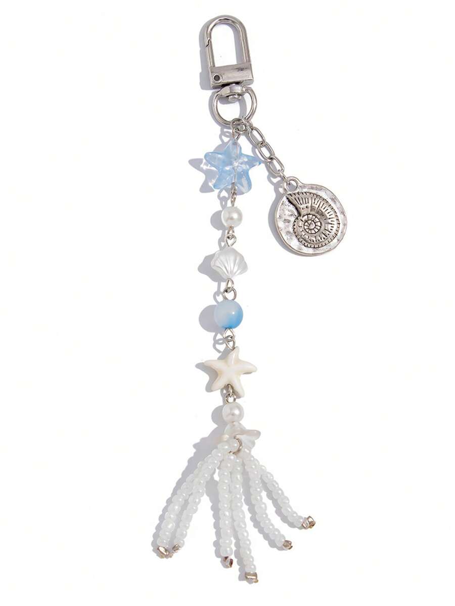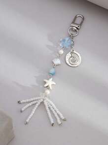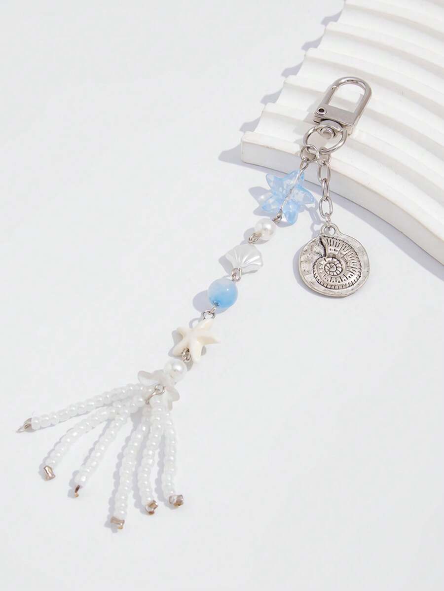 Fairycore 1 pieza Llavero con borla de perlas con estilo de vacaciones marinas para mujer