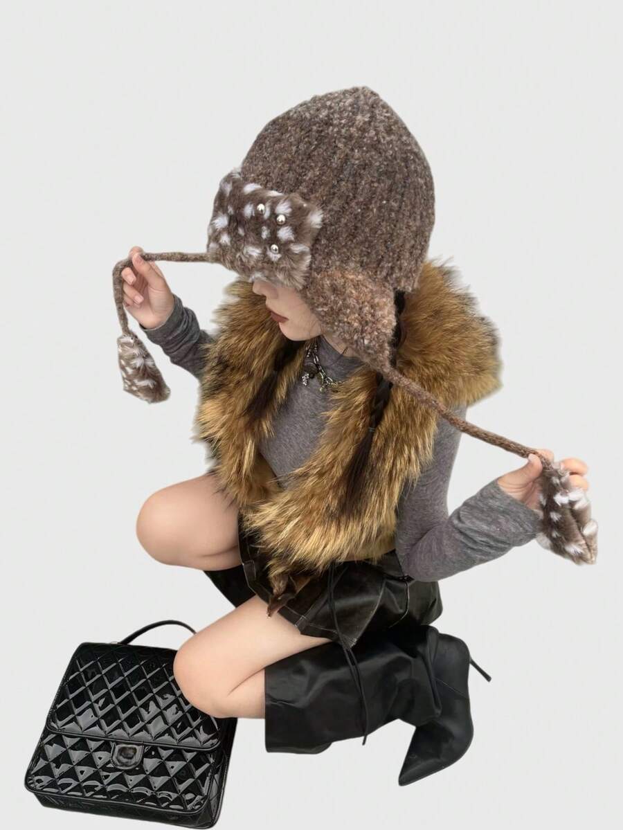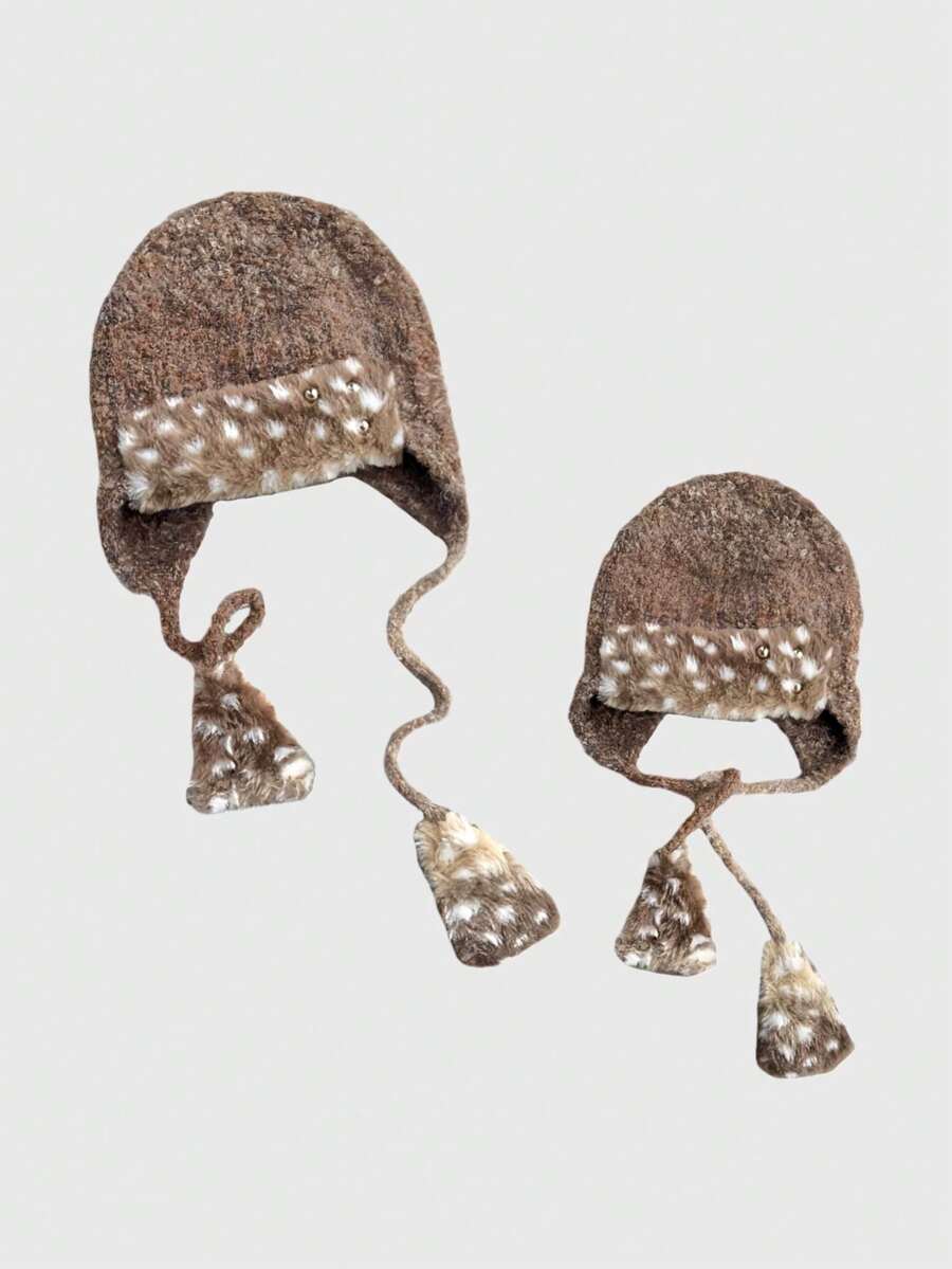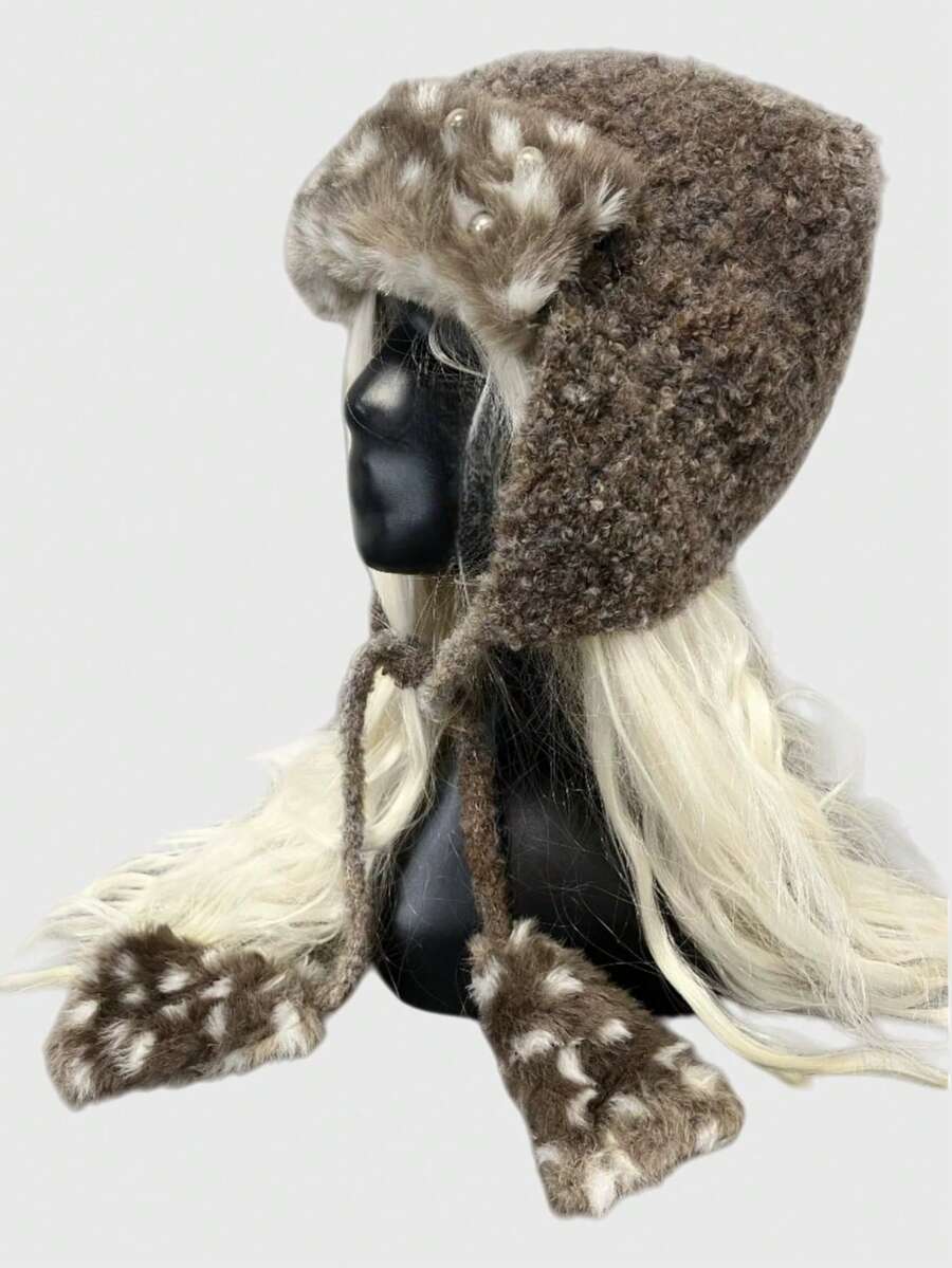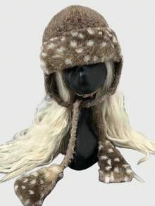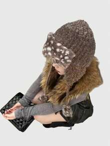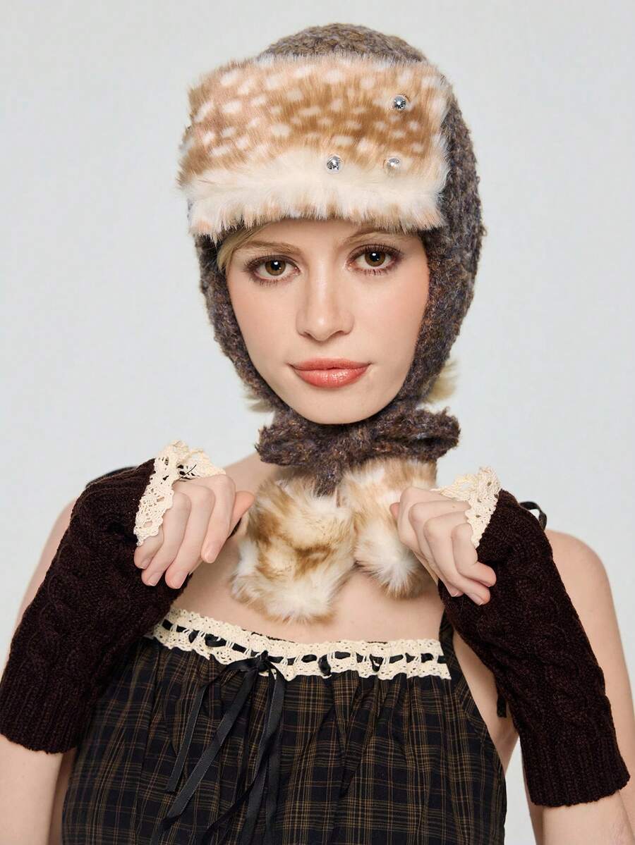 Fairycore 1 pieza Gorro de lana con fleece cálido, decoración minimalista con remaches y estampado de ciervos con estilo Y2K, adecuado para la escuela, uso casual, ir al trabajo y viajar
