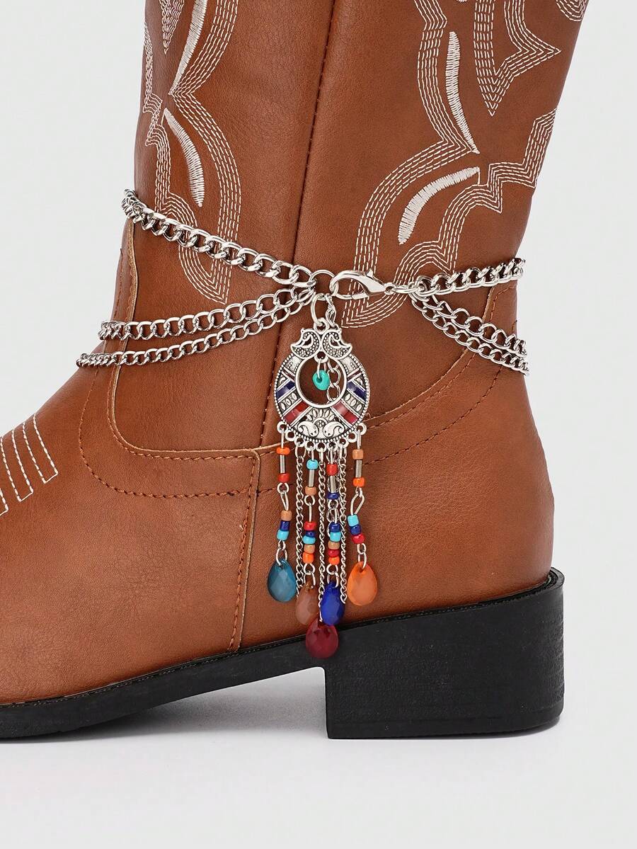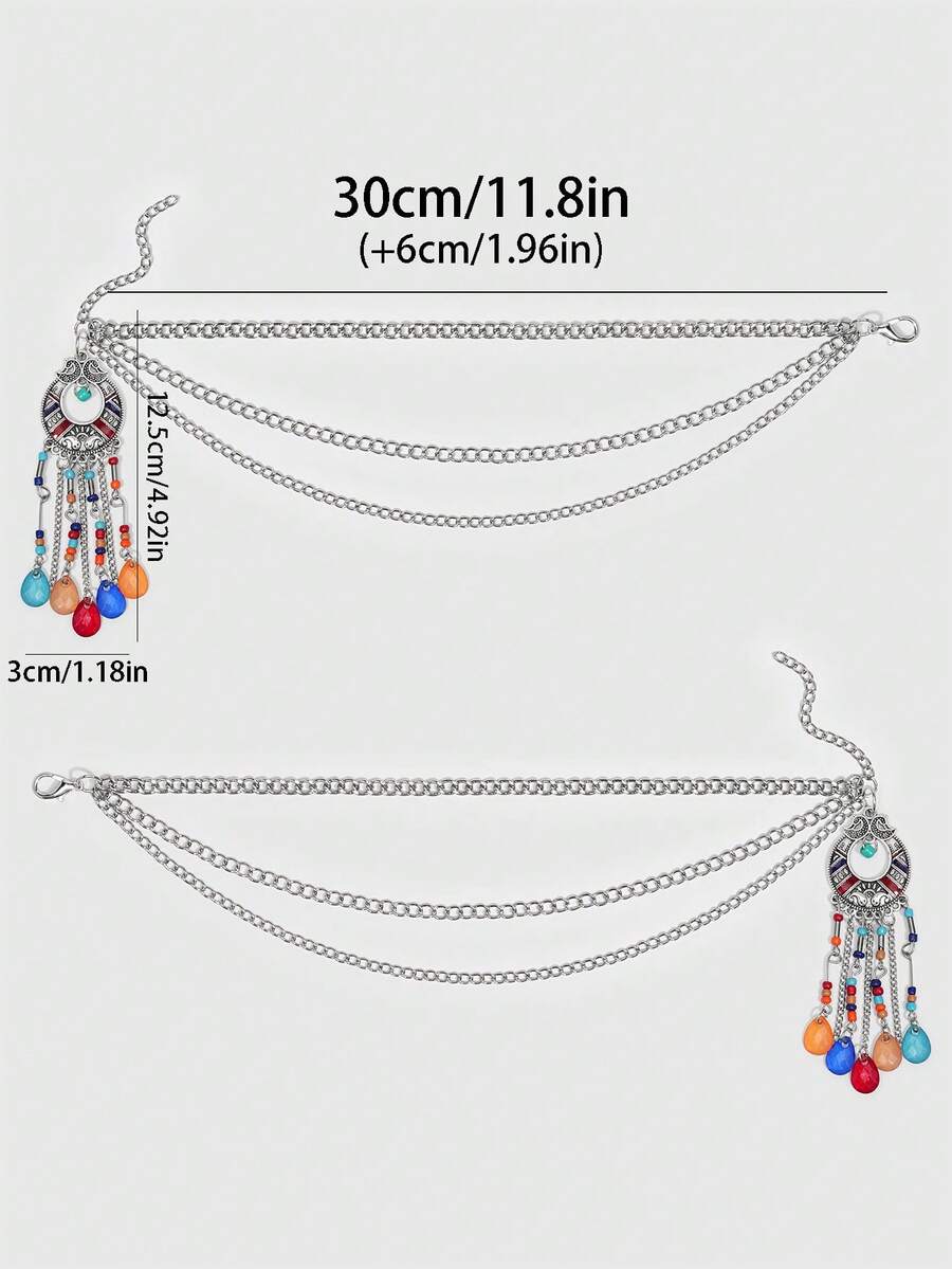 Fairycore 2 piezas Cadena colgante de metal de varios niveles con borlas de estilo bohemio para decorar zapatos y botas, retro para Halloween, uso diario y decoración de botas, regalo de cumpleaños, Ramadán