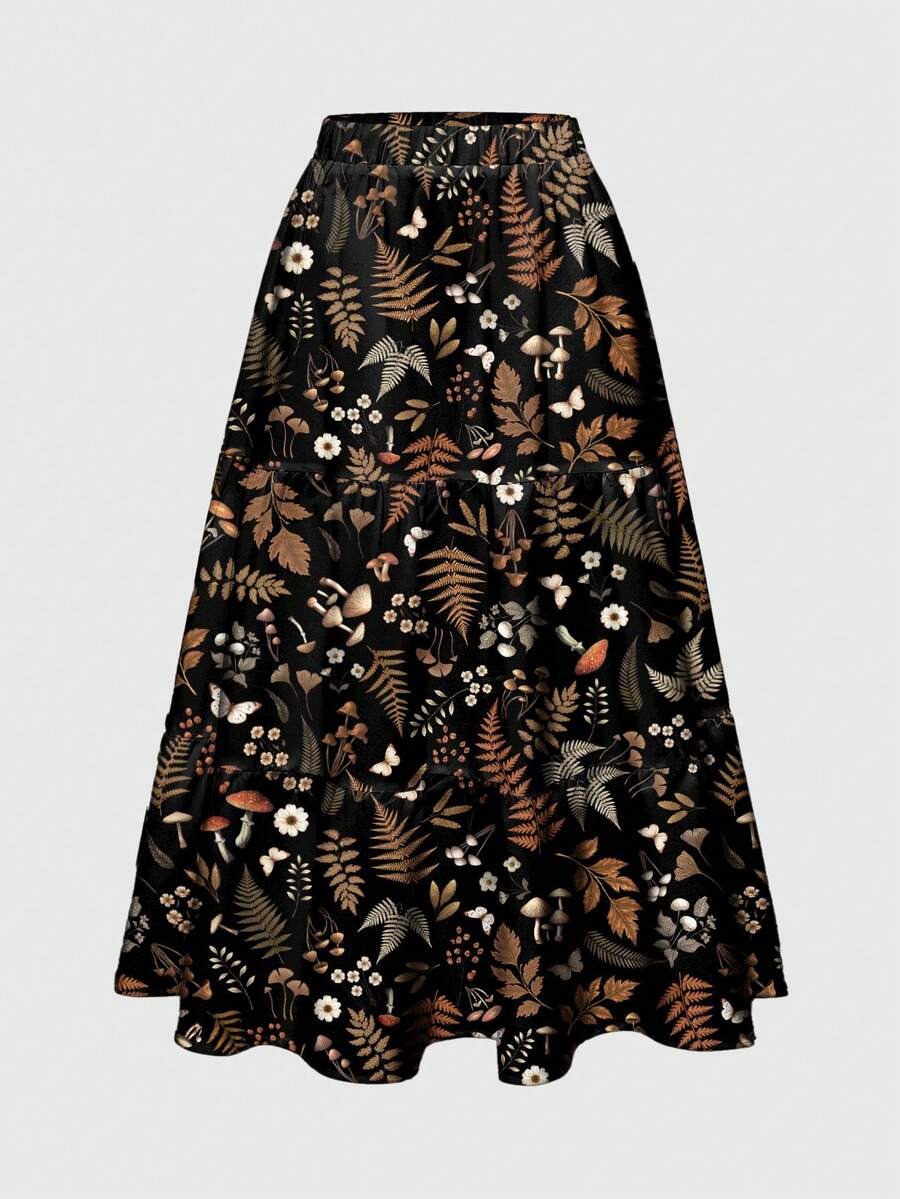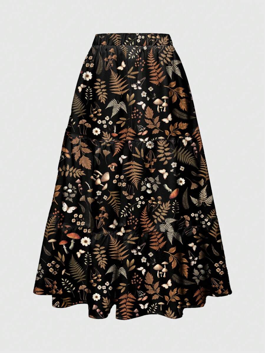 Fairycore Falda de mujer con diseño de mariposa, luna y estrellas de 3 capas con estampado completo en estilo hippie gótico de bosque oscuro